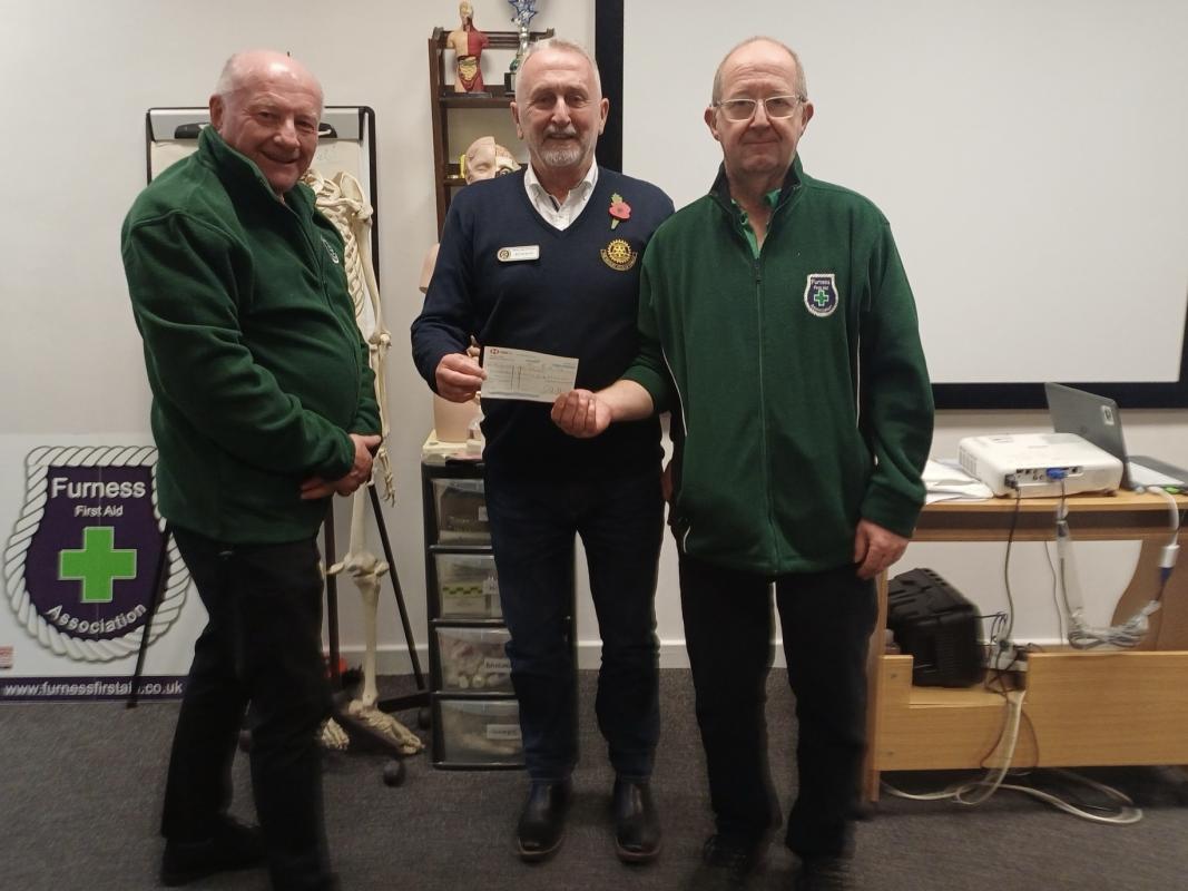 Amongst those helping this year were Furness First Aid Association and the Club was pleased to present a cheque to help them provide the services they do to local people.