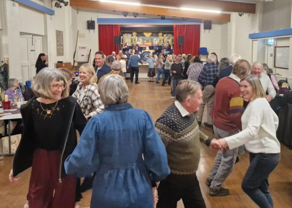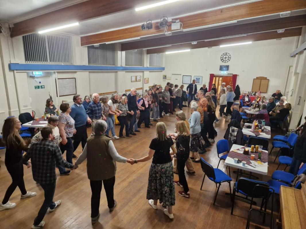 Cookridge Village Hall proved the ideal venue for Aireborough Rotary's imaginative 'Ceilidh for Carers Leeds', President Alicia's Charity of the year. Seventy enthusiastic participants took to the floor to be mentored through five different dances by the musician turned caller for the night, Heather, in tune with the music of the very professional and patient Capstick Ceilidh Band.