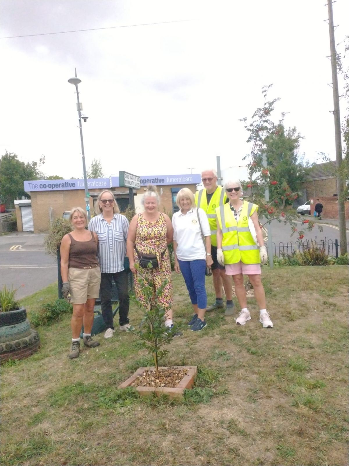 This morning President Kay, second on the right, and other members of Stainborough Rotary planted a Blue Prince, Holly Tree that they donated to Old Martha’s Yard, a fantastic community garden in Hoyland, Barnsley. The garden is open to all and run looked after by volunteers, has raised beds full of colourful flowers, seating areas to relax and ponder or enjoy your lunch, children's handmade games, hopscotch, Kerplunk and noughts and crosses, an enchanted wood area and a resident fairy!