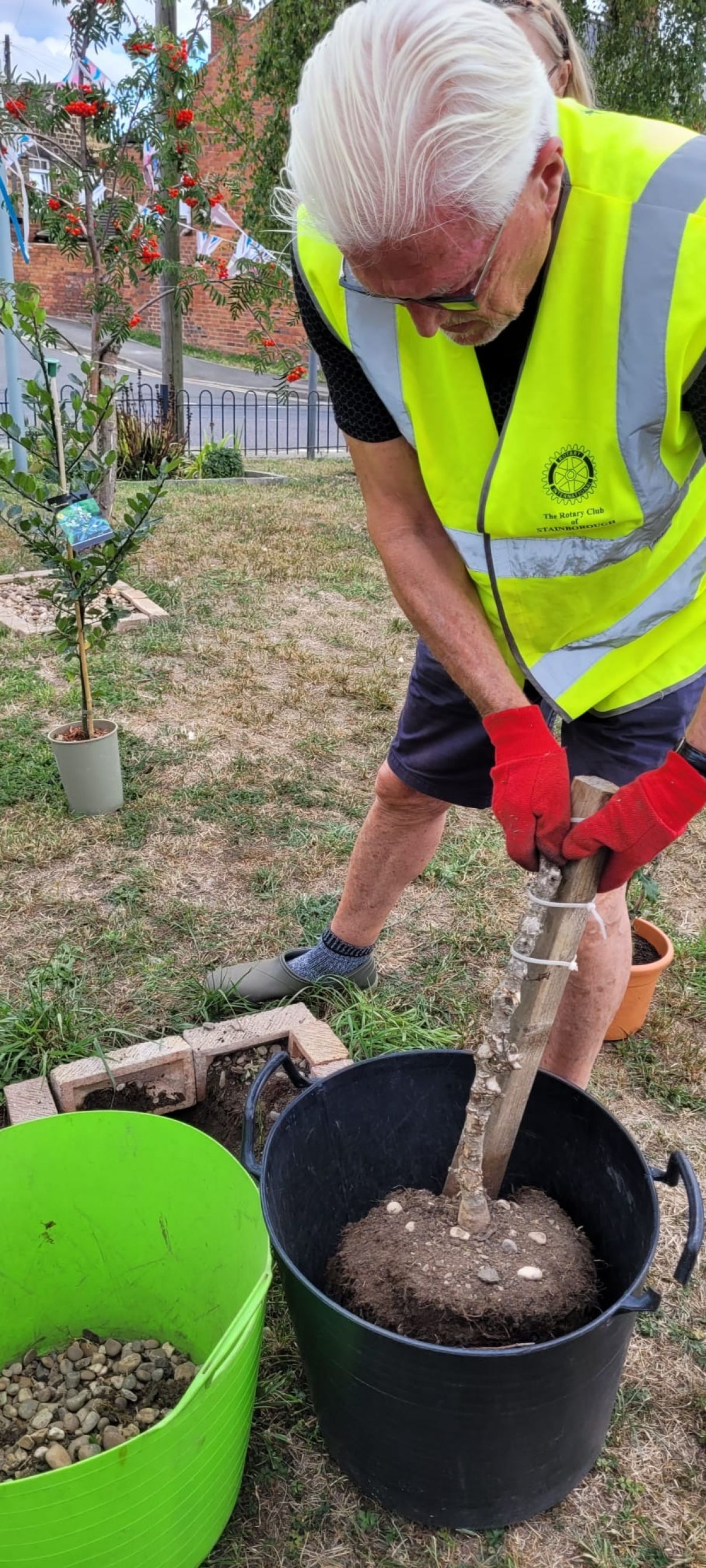 more Stainborough Rotarians, led by Geoff Goodlad have been delivering 50 Happy pots in and around Barnsley.