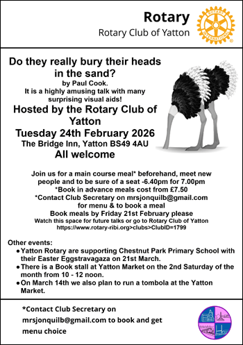 ● Yatton Rotary are supporting Chestnut Park Primary School with their Easter Eggstravagaza on 21st March.