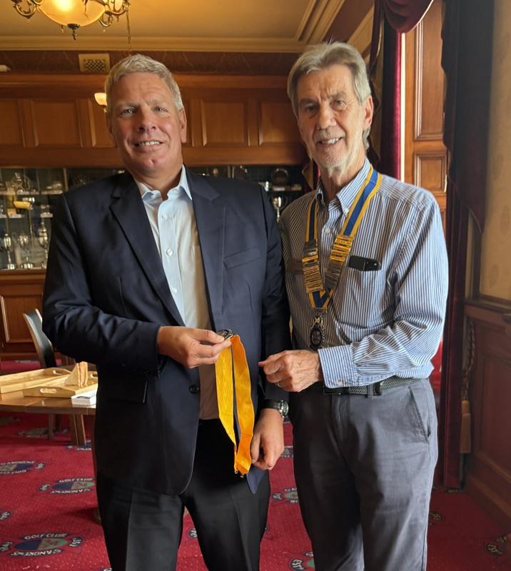 At the presidential handover to outgoing president Gordon Moir thanked members for their support in the past year before handing over the reins to the president for the forthcoming Rotary year, David Gray.