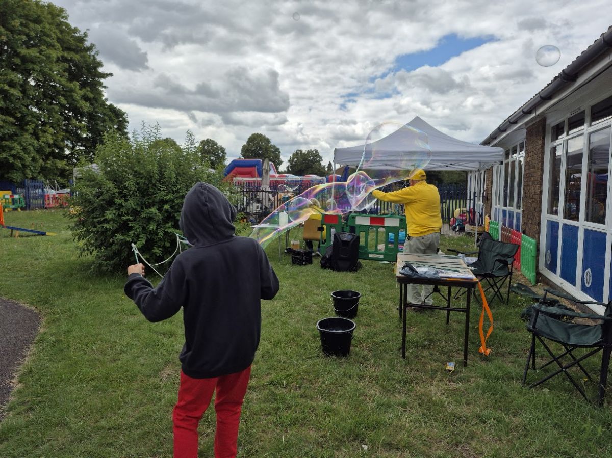 So many happy, smiling faces enjoying the outdoor inflatables, giant bubbles, various crafts and music too.