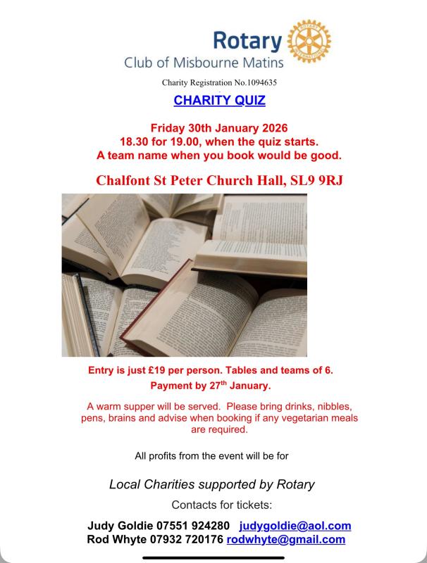 RCMM CHARITY QUIZ NIGHT Friday 30th January 2026