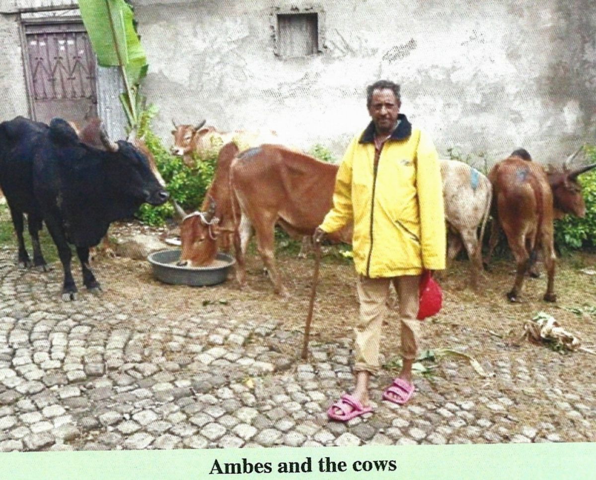 Picture 7 Ambes with 2 cows bought through the Blaize micro loans scheme. Each cow produces 14 litres of milk per day per cow. A litre sells for the equivalent of £1.40 so that after costs the cows effectively take 6 children off road and put them into school and secure accommodation.