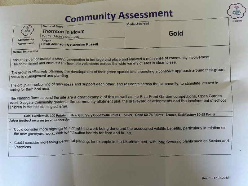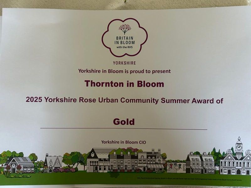 We were delighted to receive this message from Thornton in Bloom and to have been able to assist them in achieving this gold award.