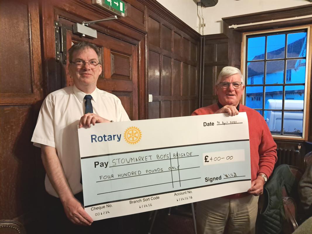CHEQUE GIVEN TO STOWMARKET BOYS BRIGADE