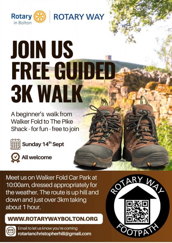 Come and enjoy the fresh air, friendship, and beautiful scenery with a free 3km walk along the Bolton Rotary Way footpath (accessed bu GM ringway) on:
