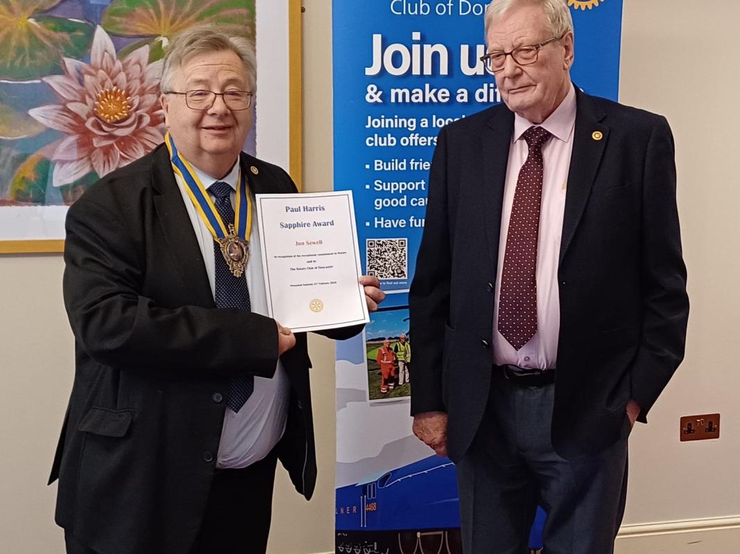 President Jon Sewell being presented with a Sapphire PHF