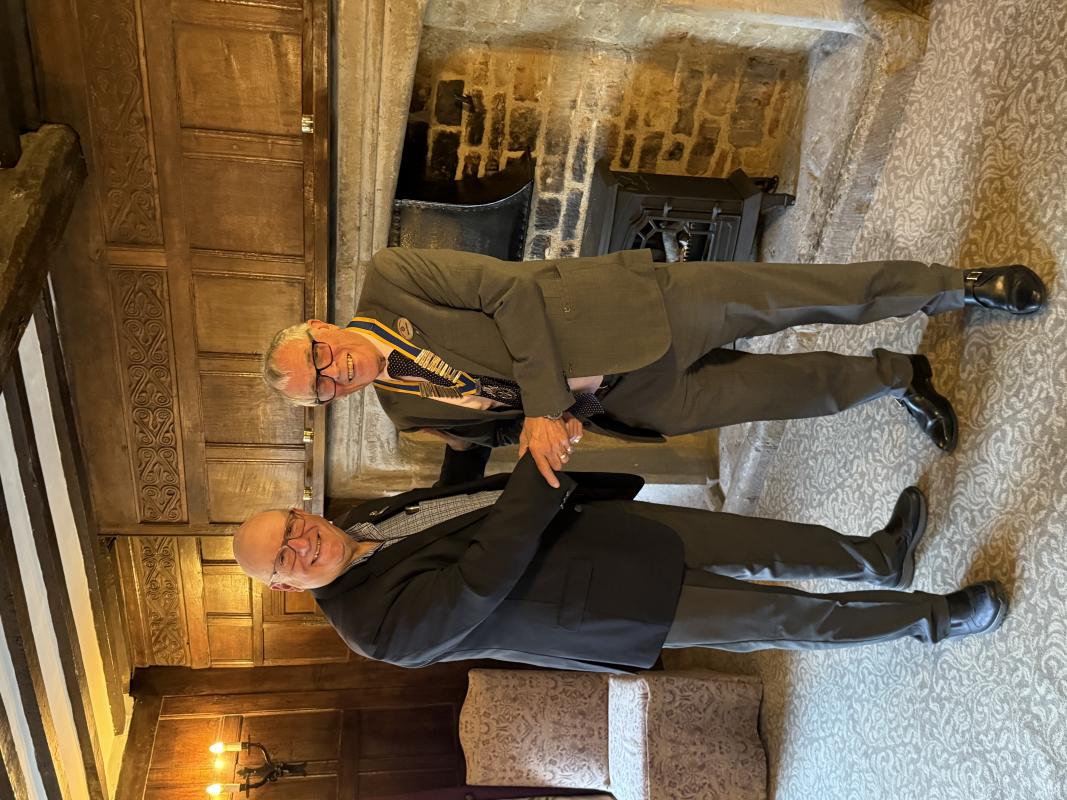 Guests and PHF. TAt our regular club meeting on the following day on 19 August saw the club welcome 2 guests firstly the District Governor Chris Knight, and secondly a long standing town business owner and Uppingham First volunteer director Kath Gilbert who was recognised by the award of honorary membership, shortly before her 90th birthday. DG Chris Knight presented the award in the Oak Room of The Falcon Hotel, Kath was applauded for her outstanding voluntary service and commitment to the town throughout her business life.
