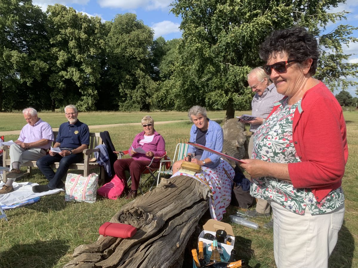 On 23 Jun the Club meeting was held in the open air at Burghley Park, Stamford. 16 members enjoyed fizz and strawberries in the beautiful sunshine with a fairly gusty wind. All voted the idea a great success.