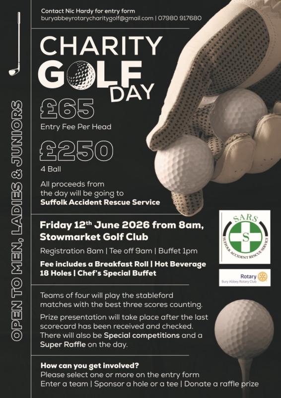 Entries are invited for the 2026 Charity Golf Day to be held at Stowmarket Golf Club. All proceeds to SARS ( Suffolk Accident Rescue Service)