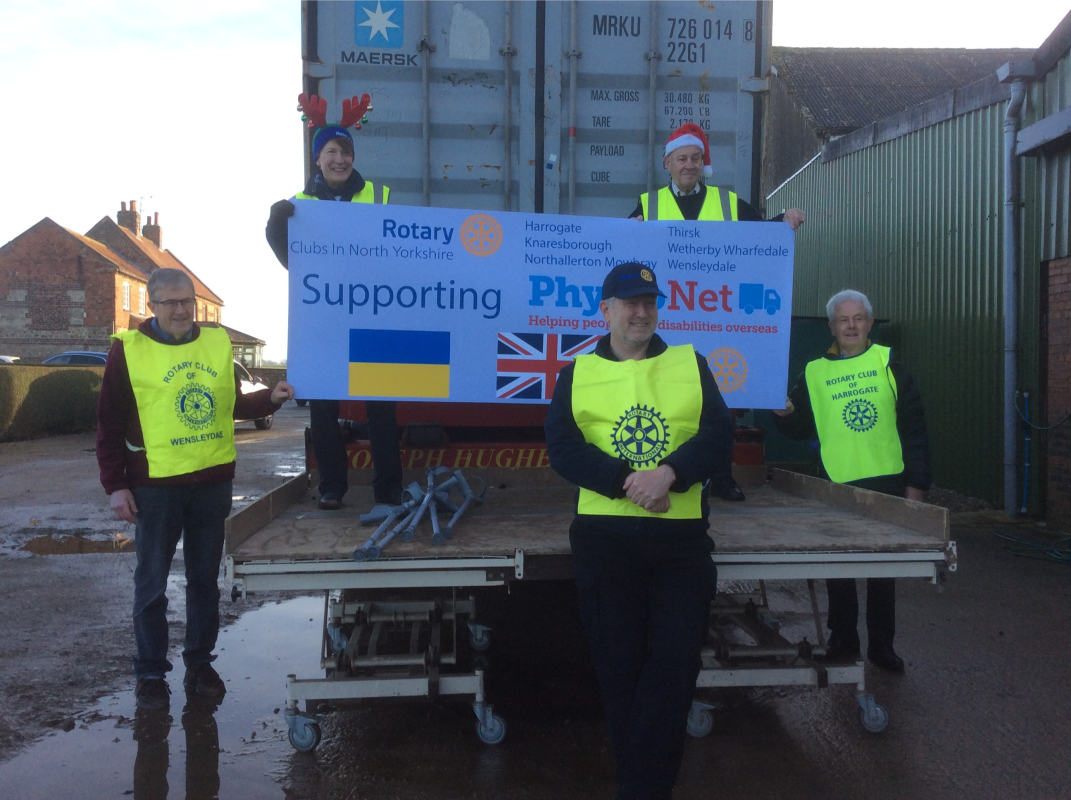 Harrogate Rotary Club has recently donated £500-00, sent earlier this year to Physionet (along with five other local Rotary Clubs) to assist in the delivery of a container shipment to Ukraine. In these pictures you can see Physionet volunteers loading a container with wheelchairs,crutches,chairs and other vital supplies at their warehouse at Gelsthorpe Farm Whitley, for delivery to Ukraine.