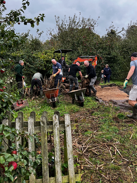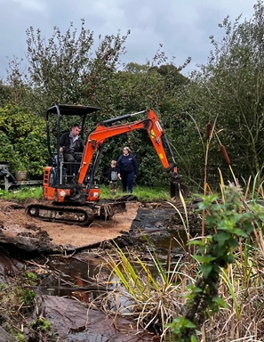 But we have several members who go out and work to help activities in our area, one of which is the local town farm. They needed a new (second pond/pool) created to be a part of their overall plan. So, we provided money, and people power to create the pond and the pictures show the progress very recently. The digger, pond liner and people power to make the pond. Job done!