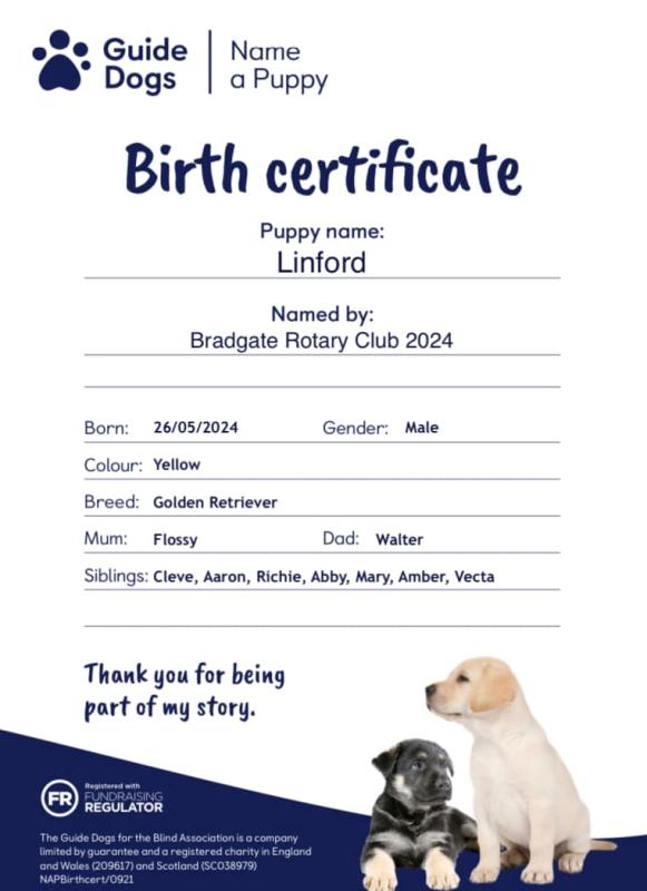 Bradgate Rotary announced that they had raised more than £3,000 at their Bark in the Park event on May 12, 2024 to name a guide dog.