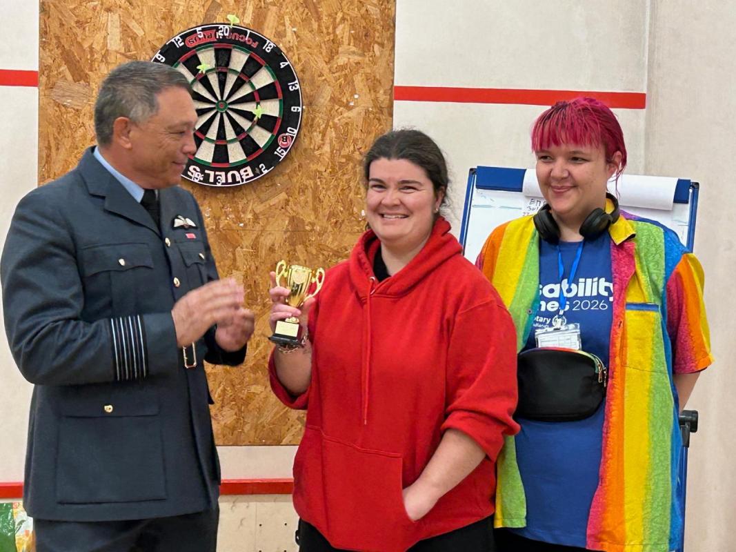 Alan Bosworth not only scored a bullseye but went on to win the senior males darts competition at the Rotary District 1070 Disability Games 2026. Alan beat Carl Weininger in the final in the knockout competition. Because Carl uses a wheelchair, his dartboard was set lower than the one used by Alan.