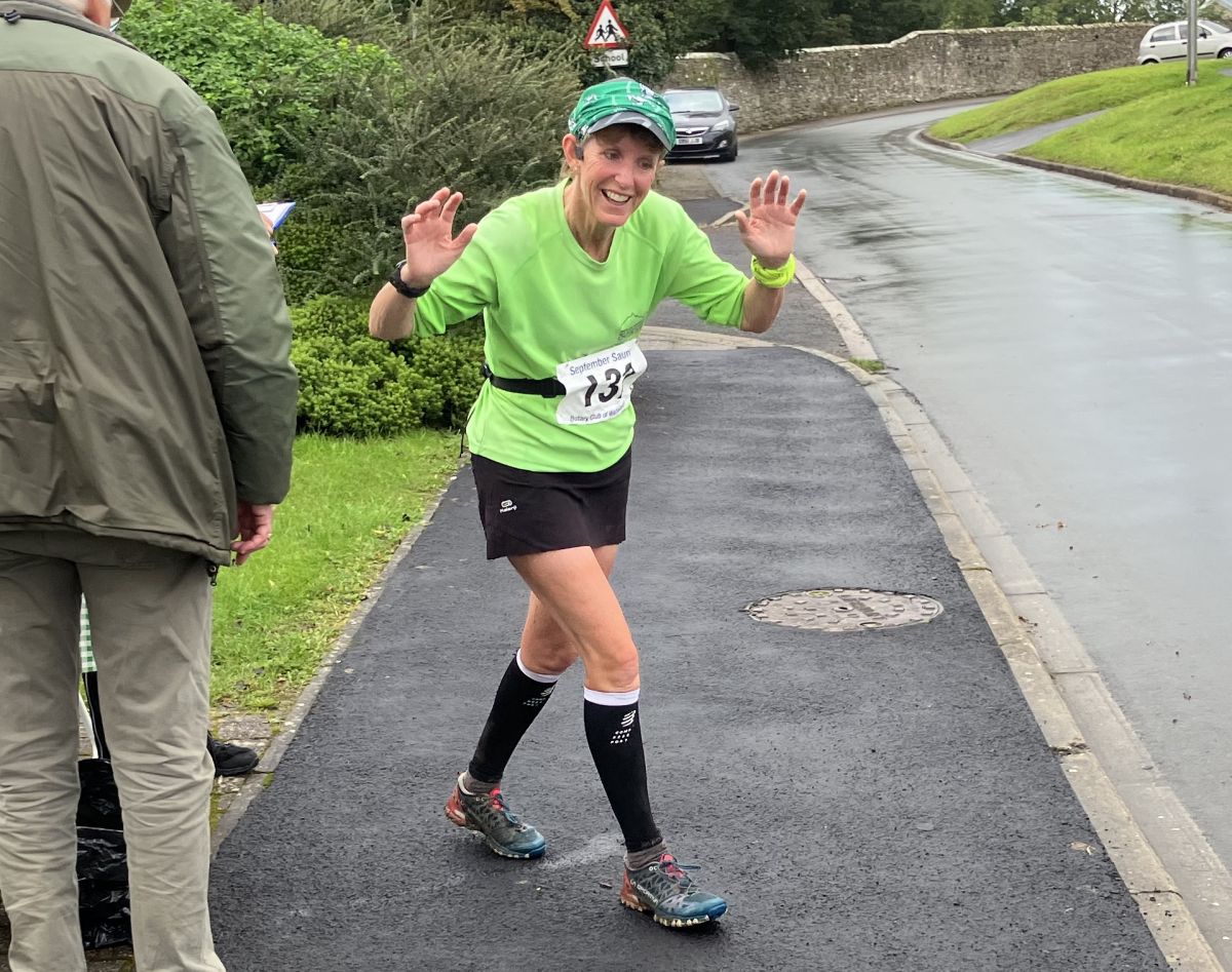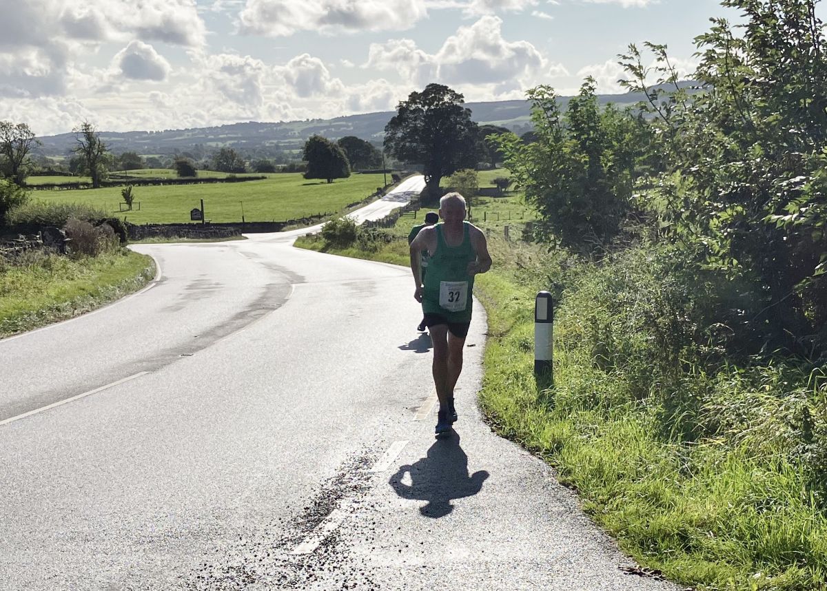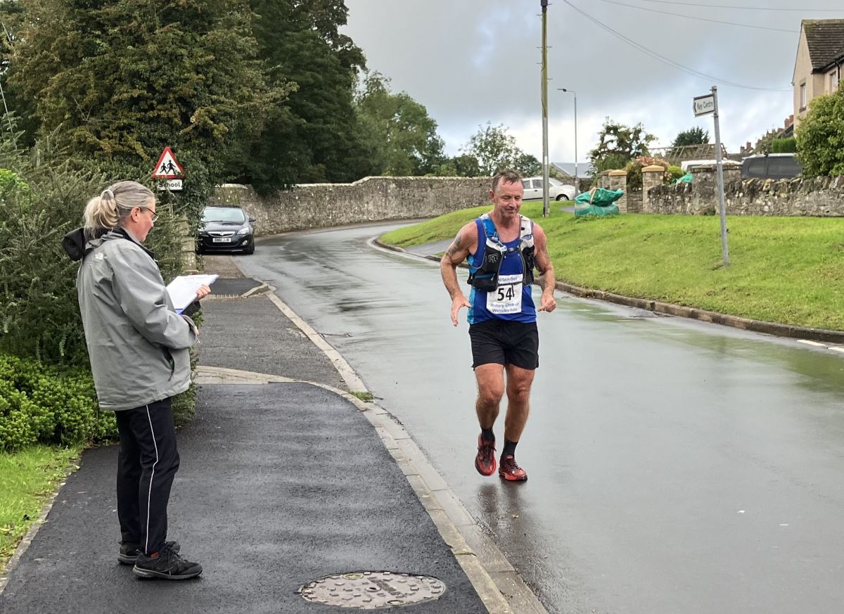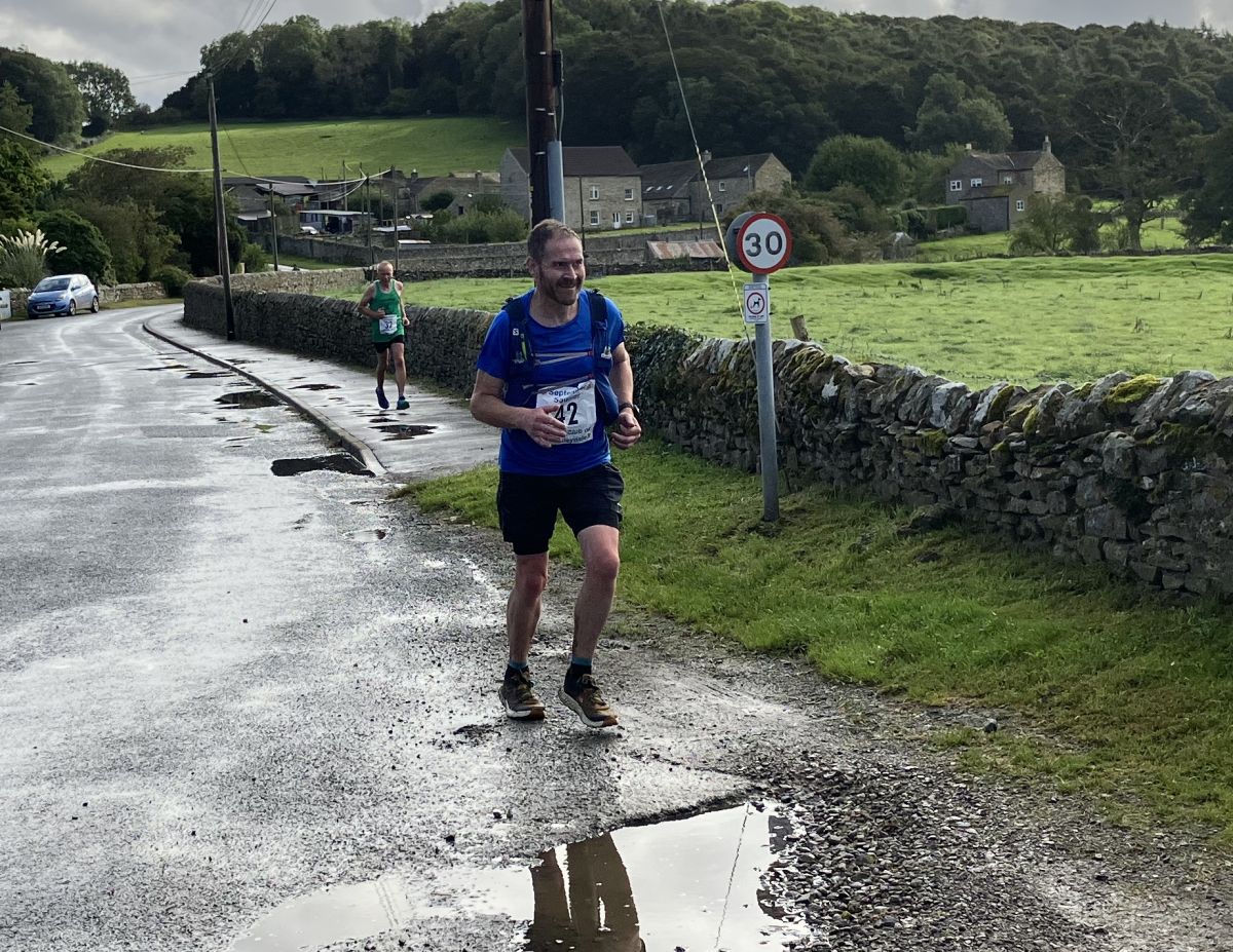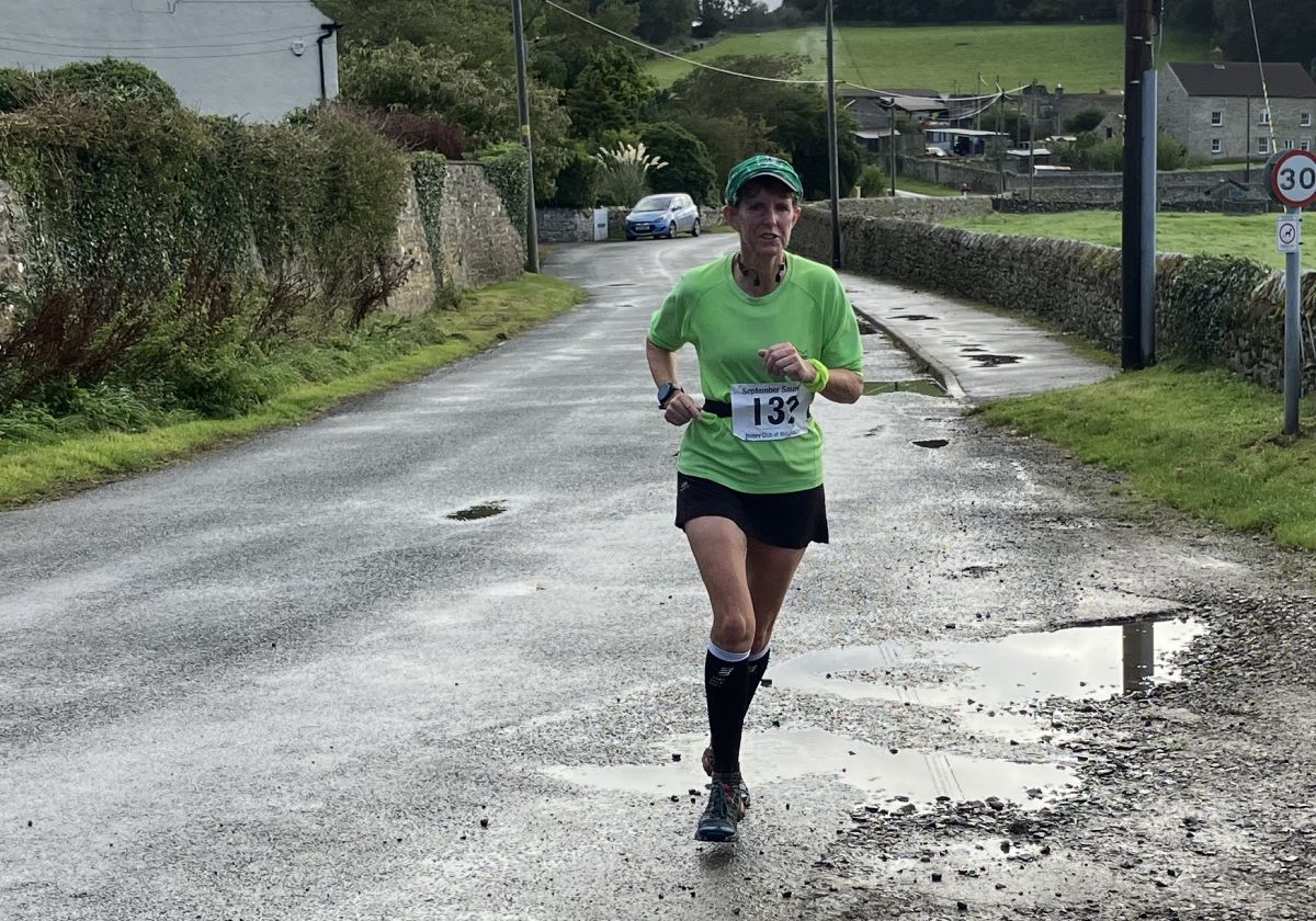 The weather forecast promised dry and sunny all day, and it was, apart from from at the start when it poured down for about half an hour! Other than that, the conditions were good, though a few short sections of the route had overgrown quite a lot, so a few runners suffered scratches to their legs, and one fell and incurred abrasions, needing some minor first aid by our President at the finish.