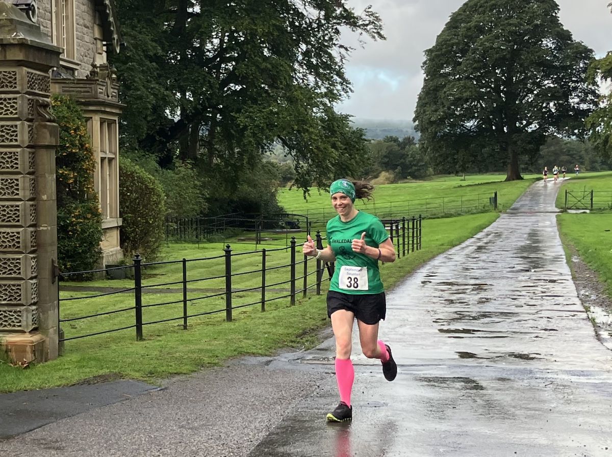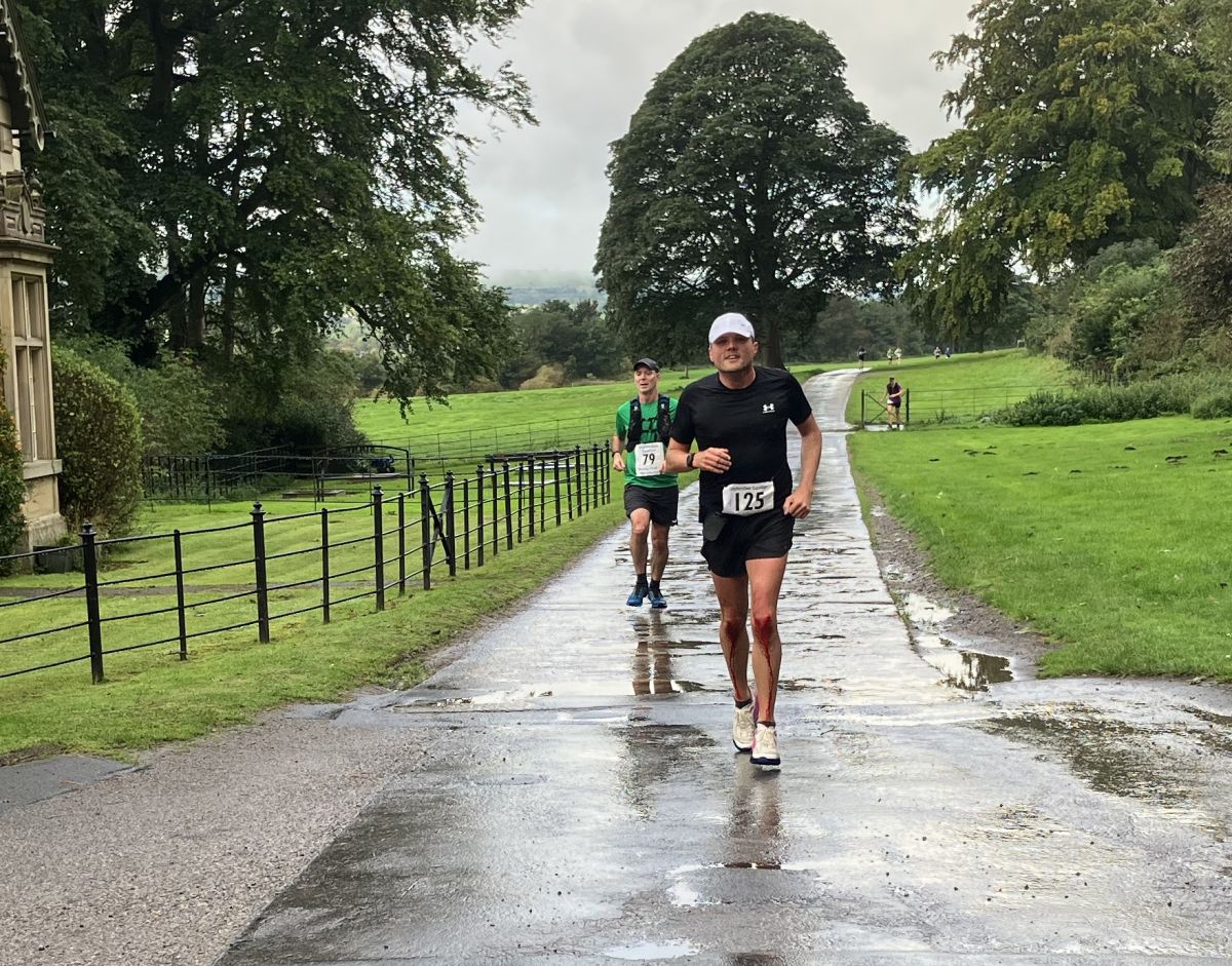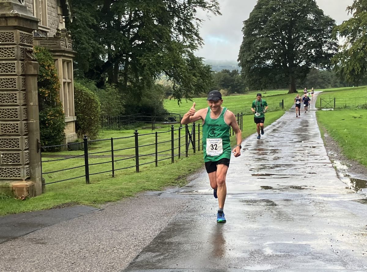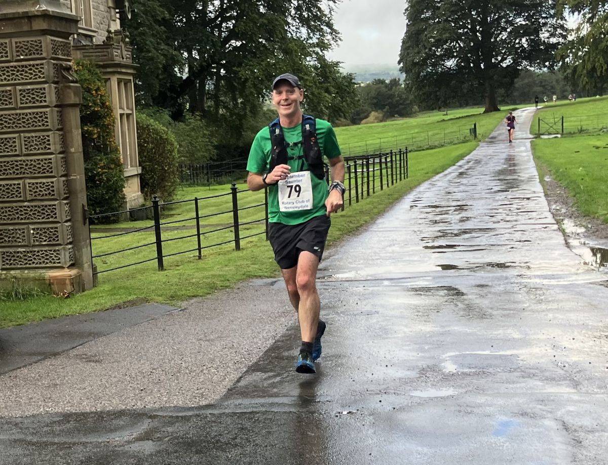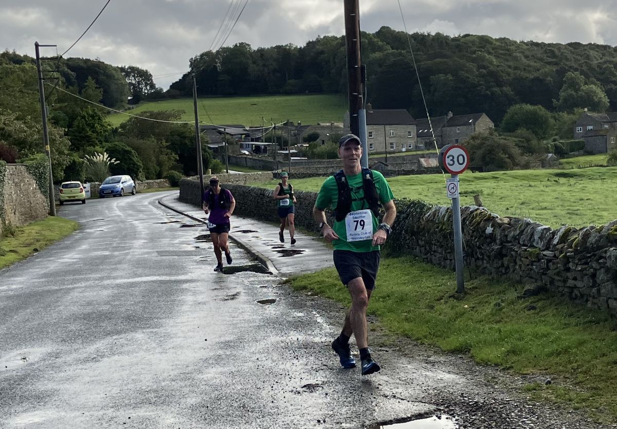 The weather forecast promised dry and sunny all day, and it was, apart from from at the start when it poured down for about half an hour! Other than that, the conditions were good, though a few short sections of the route had overgrown quite a lot, so a few runners suffered scratches to their legs, and one fell and incurred abrasions, needing some minor first aid by our President at the finish.