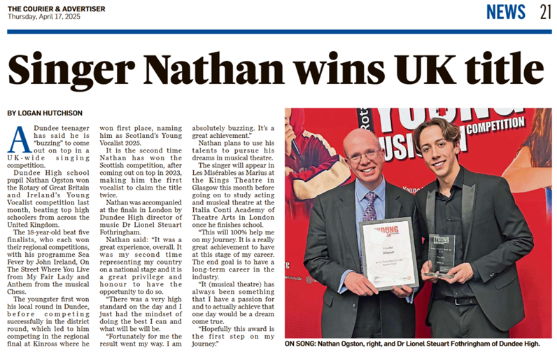 more Dundee pupils strike the right note for Young Instrumentalist and Young Vocalist competitions