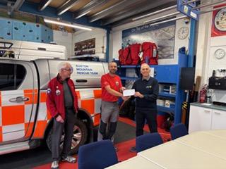 President Mike Hardman presenting a cheque for £2000 to the Mountain Rescue Team.