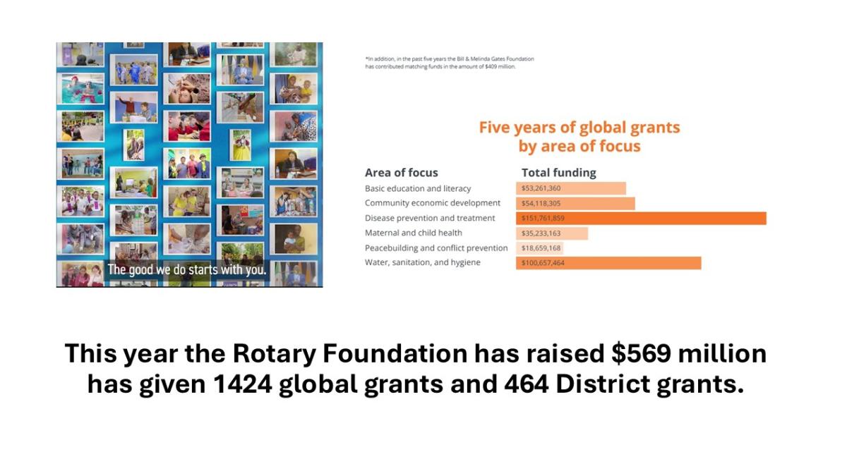 The Rotary global charity, the Rotary Foundation, supports a wide range of international projects aligned to the Rotary "pillars". Yes, it really did raise over $500 million - it's not a typo!