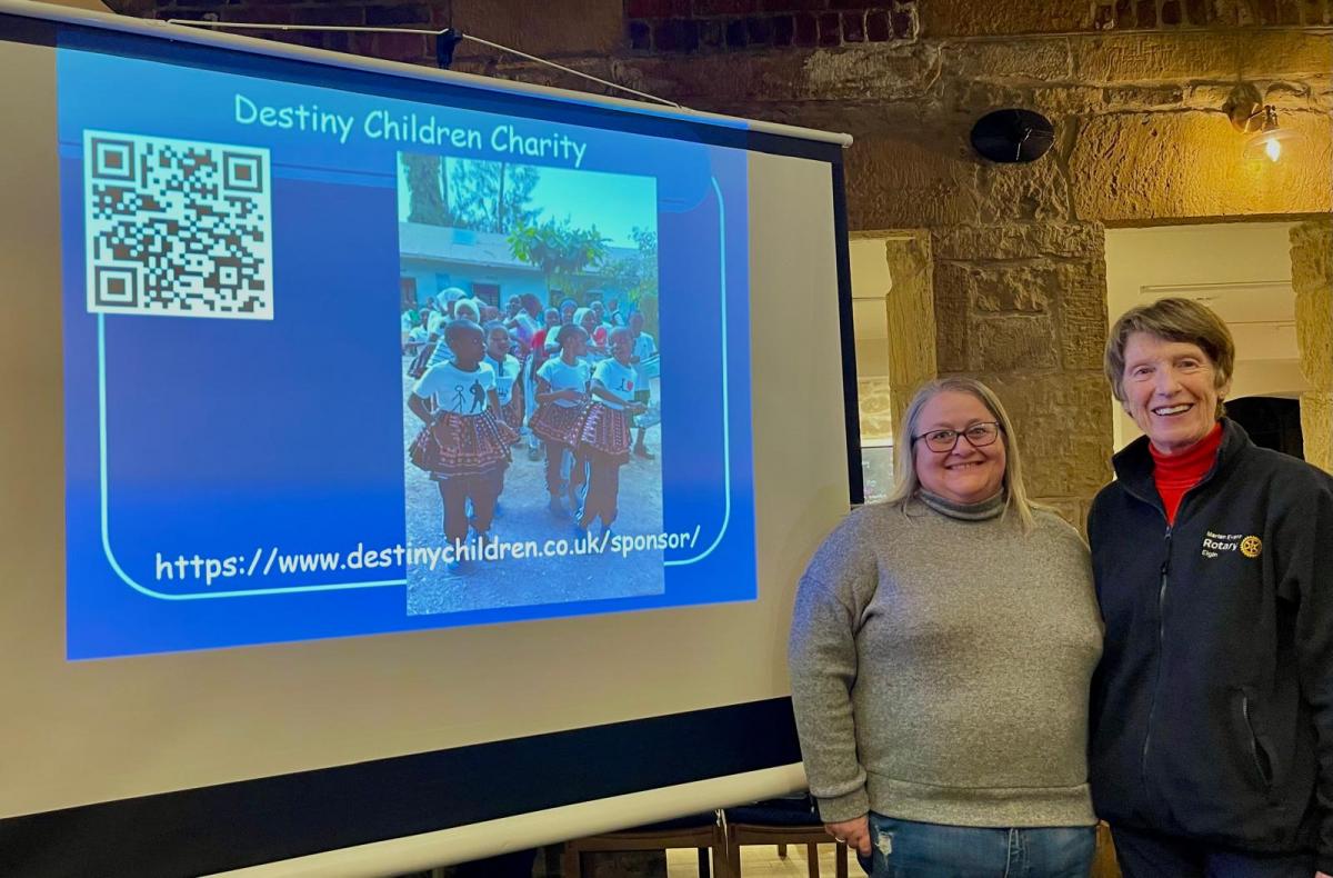 The speaker this week was Debi Weir a trustee of the Destiny Childrens Charity which was founded in 2009 and opened the Destiny Garden School in Mtongwe which is a poor suburb of Mombasa, Kenya. Back in 2009 the school started with 40 children and has seen many improvements over the years. In 2025 the school now has 10 classes with 500 children aged 3 to 15 years who benefit from free education and a good meal each school day.
