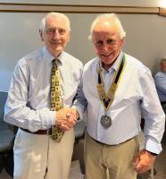 Alan Ingram,President for the year 2024-2025 receives the chain of office from Andrew LLoyd-Green, President 2023-2024 at the handover meeting in July 2024.