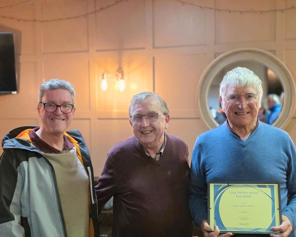 Long Service Award: President David presented a certificate to Ken Smith in recognition of his 50 years as a Rotarian.