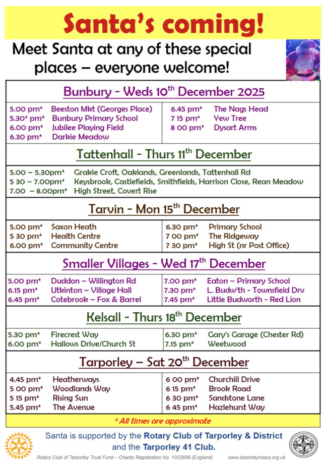 moreTarporley Rotary Club supports the local community and a wide range of Local, National and International charities