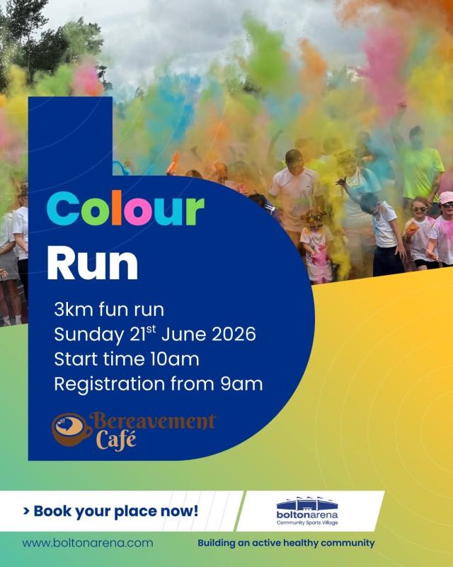 BOOK HERE: https://www.eventbrite.co.uk/e/bolton-arena-colour-fun-run-3km-2026-tickets-1984116019425