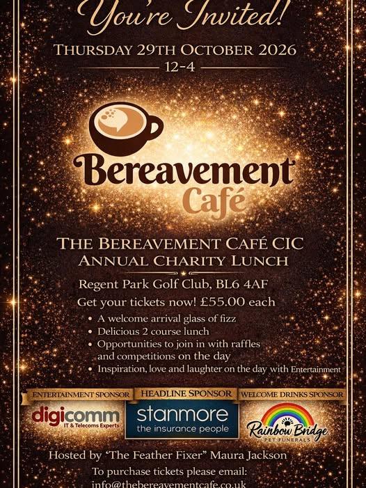 The Bereavement Cafe CIC's popular lunch is now ready to book now. Hosted by The Feather Fixer - Maura Jackson.