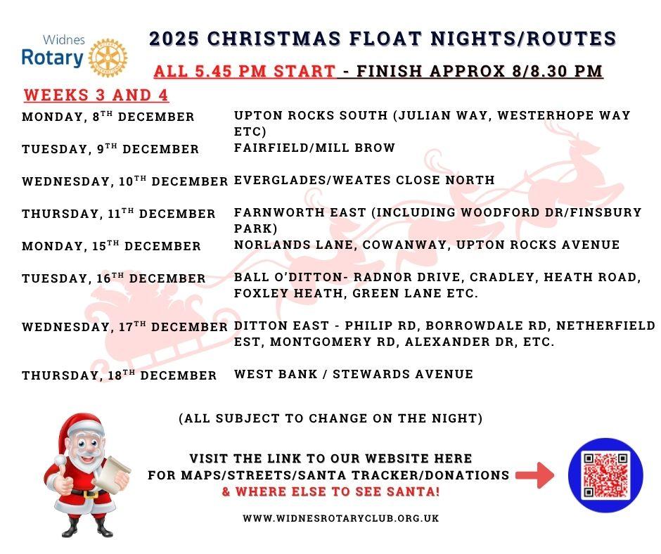 ALL 15 CHRISTMAS FLOAT ROUTE MAPS ARE SHOWN IN DATE ORDER IN OUR PHOTO GALLERY, JUST CLICK THROUGH THEM TO FIND YOUR AREA