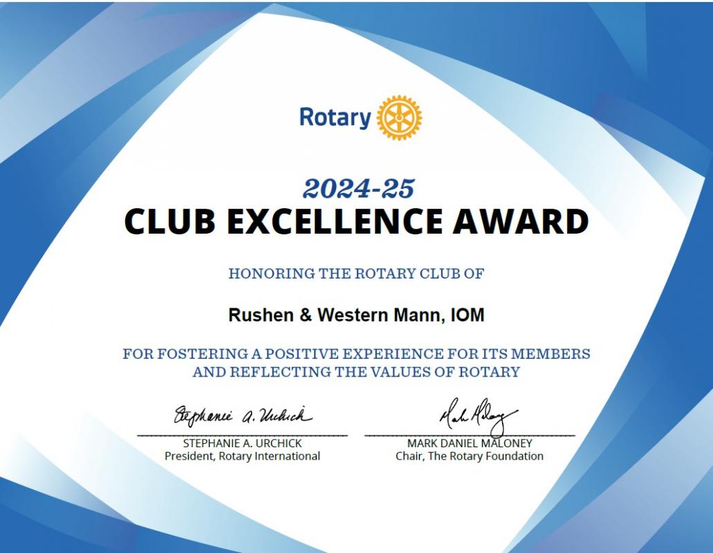 We are the only Rotary Club in the Isle of Man to achieve this and one of only 6 clubs in Rotary District 1285 covering NW England and Isle of Man to do so.