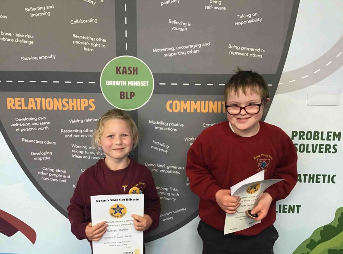 more The Rotary Club of Rushen and Western Mann is proud to award pupils at Peel Clothworkers School, with their Rotary Star certificates, badges and book tokens.