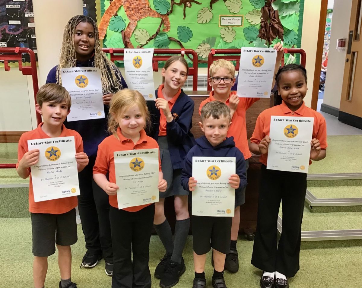 more In a school assembly at the end of June , the Rotary Clubs of Onchan and Rushen & Western Mann were proud to award pupils at Ashley Hill Primary School with their Rotary Stars certificates, badges and book tokens. Congratulations to all the award winners.