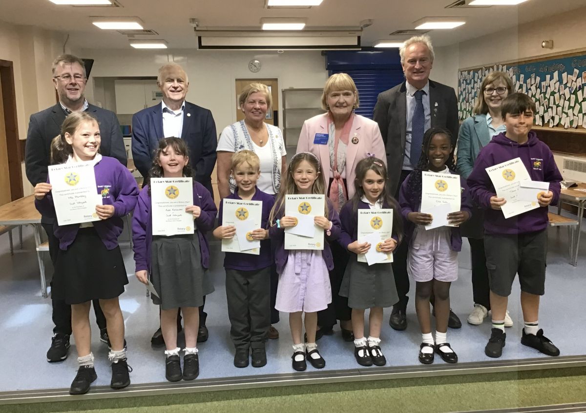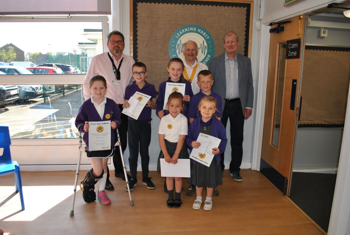 more On 30th May 2022, the Rotary Club of Rushen and Western Mann was proud to award pupils at Ballasalla Primary School, with their Rotary Star certificates, badges and book tokens.