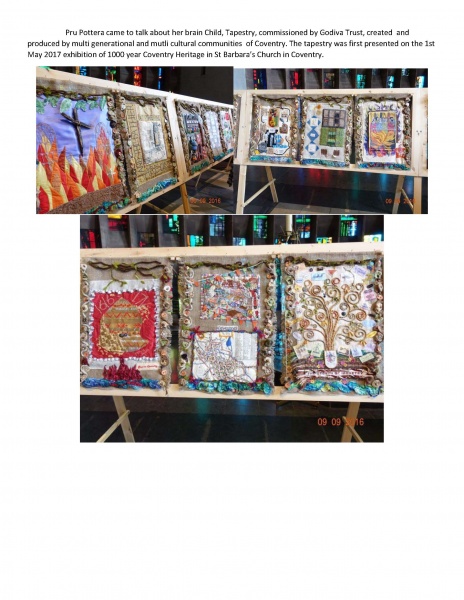She came to the rotary meeting to tell us how she has become involved in the Godiva Trust and show us the tapestry.