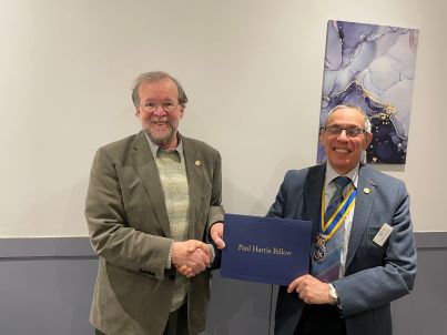 A Paul Harris Fellowship, which is named after Rotary's founder, is awarded to recognize outstanding Rotary work, above & beyond a normal Rotarian contribution.