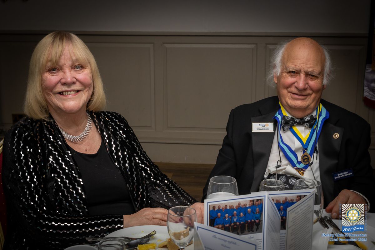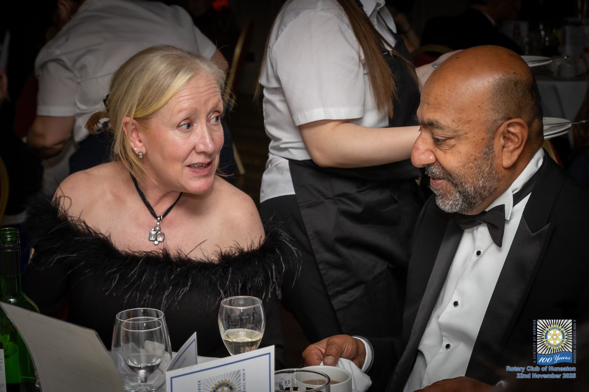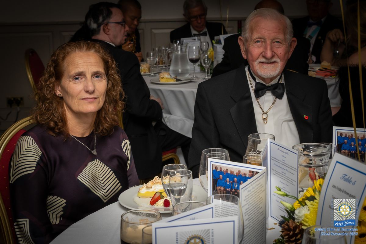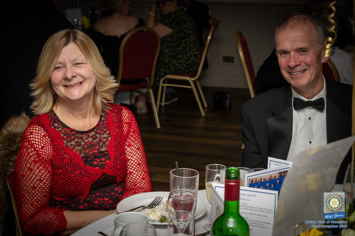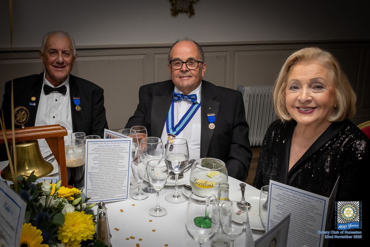 The evening began with a welcoming glass of bubbly before attendees enjoyed a superb three-course meal. President David Lloyd addressed the room with a heartfelt speech, recognising the profound contribution Rotary has made to Nuneaton and North Warwickshire over the past 100 years. He highlighted standout events from this milestone year, including the Matt Ford Concert and the Unsung Hero Afternoon Tea, and shared thoughtful reflections on what the club’s founder members might think if they visited today.