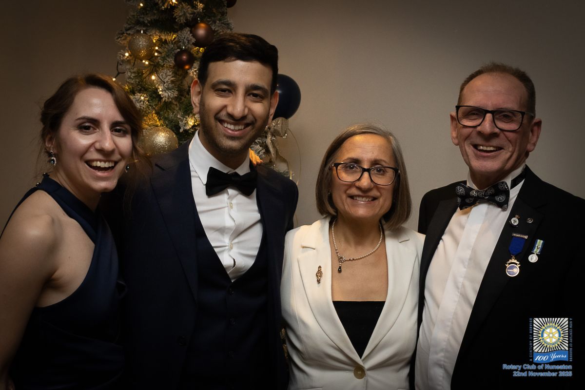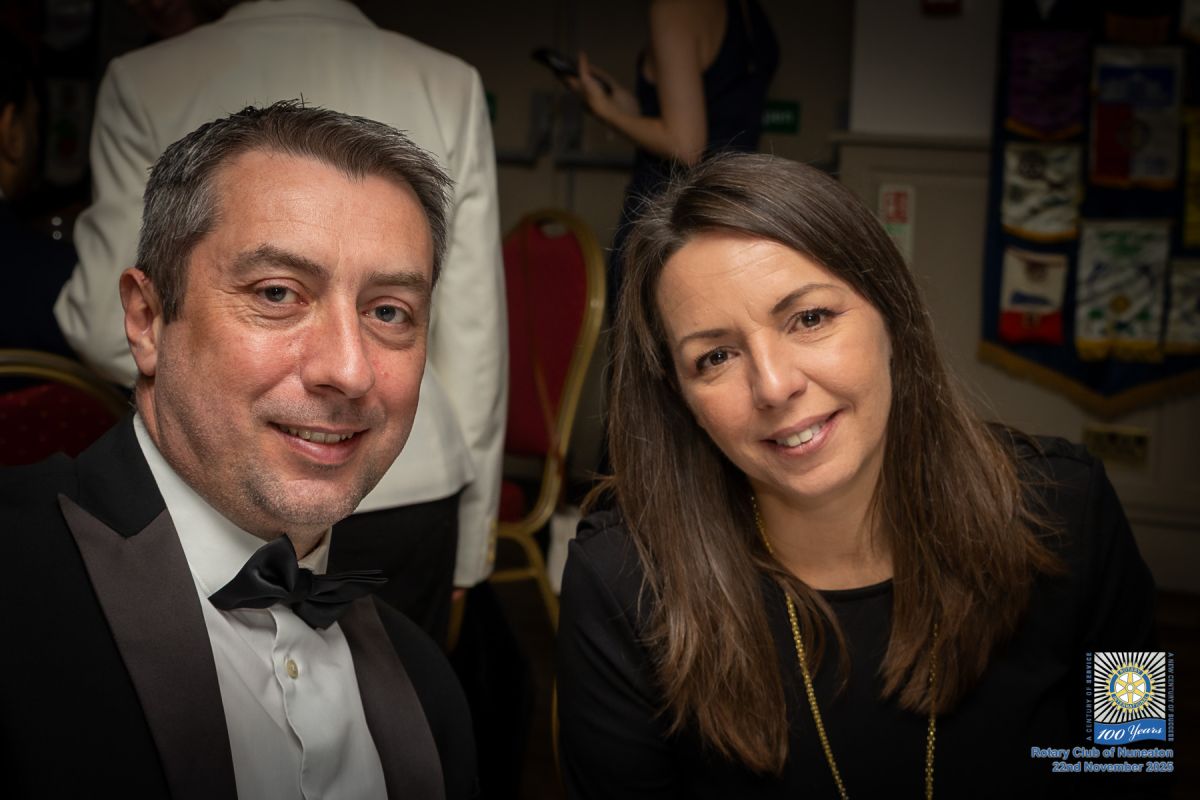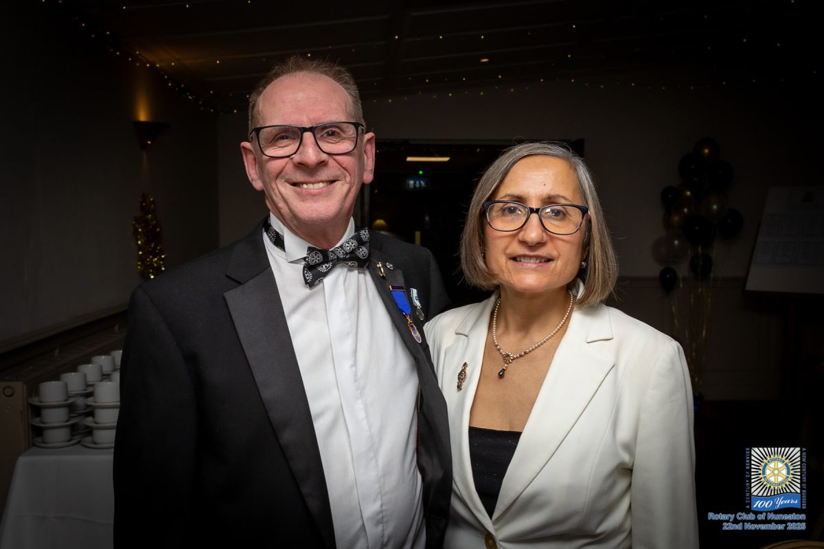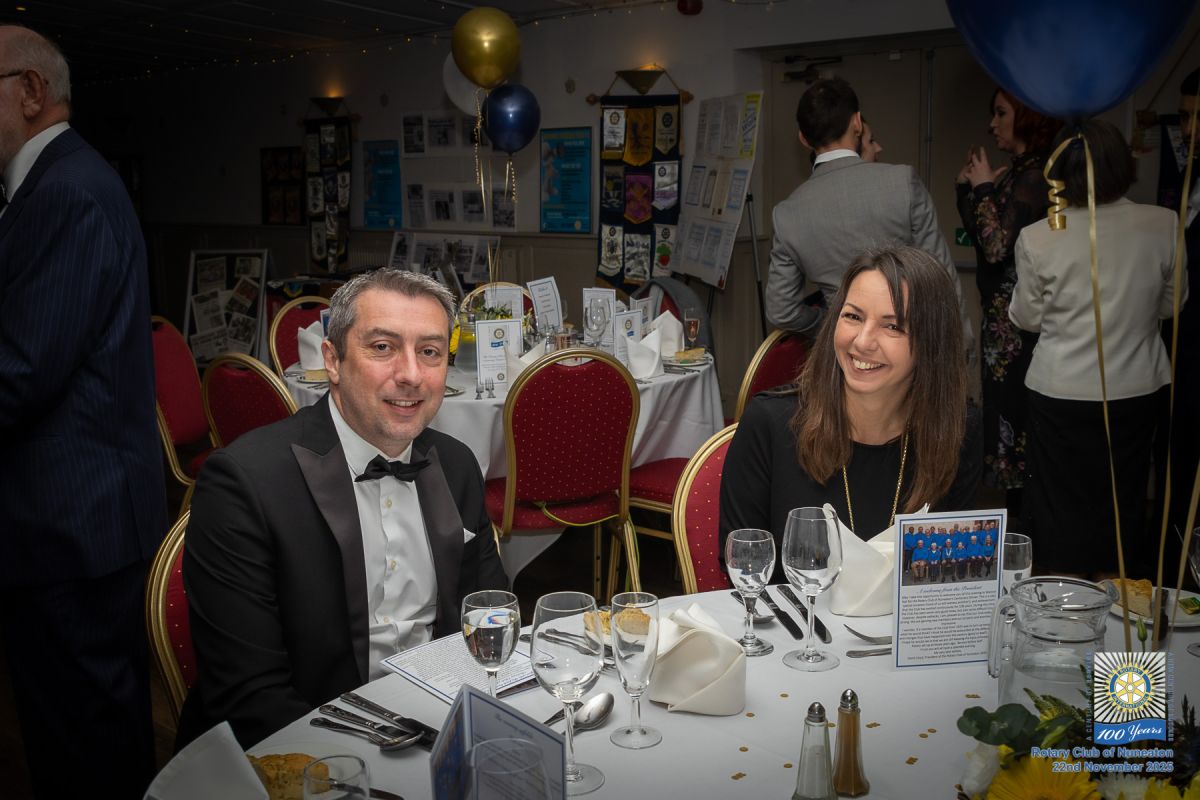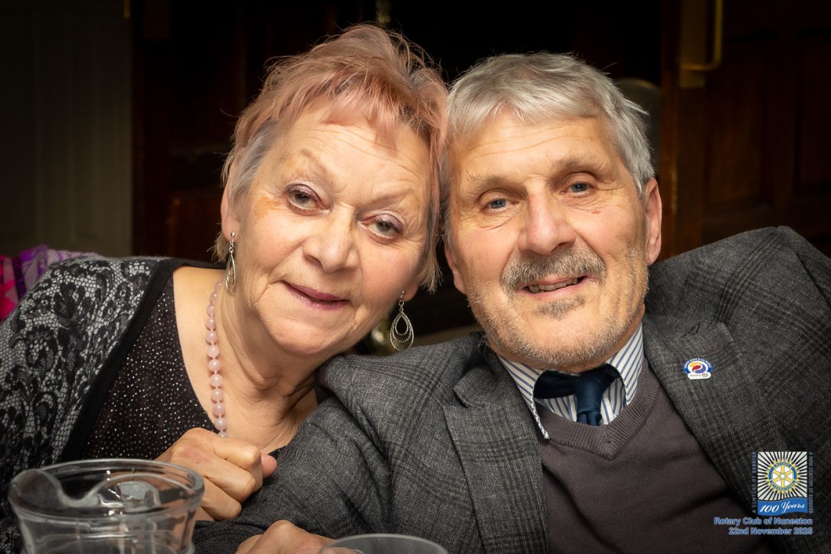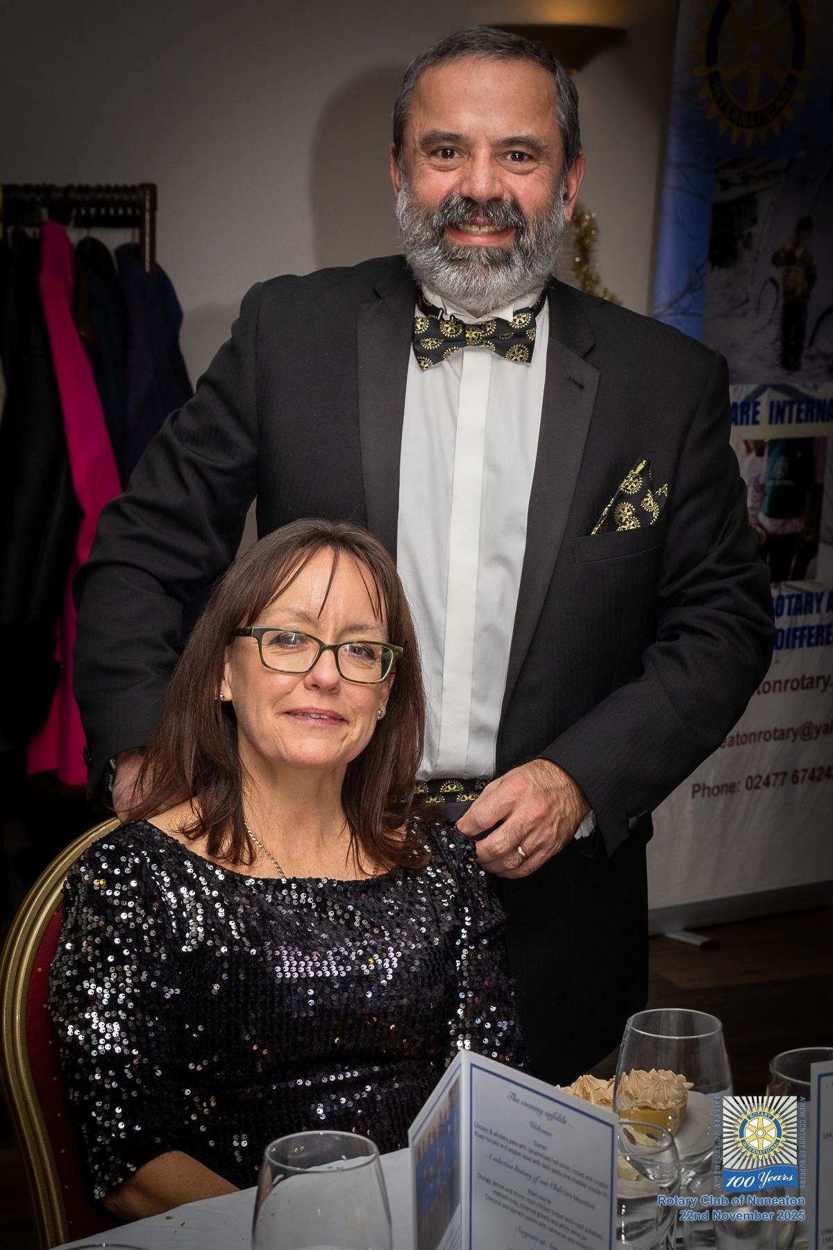 The evening began with a welcoming glass of bubbly before attendees enjoyed a superb three-course meal. President David Lloyd addressed the room with a heartfelt speech, recognising the profound contribution Rotary has made to Nuneaton and North Warwickshire over the past 100 years. He highlighted standout events from this milestone year, including the Matt Ford Concert and the Unsung Hero Afternoon Tea, and shared thoughtful reflections on what the club’s founder members might think if they visited today.