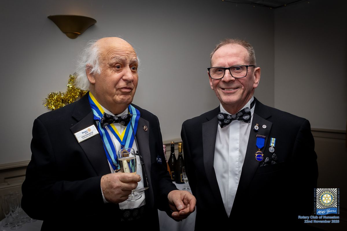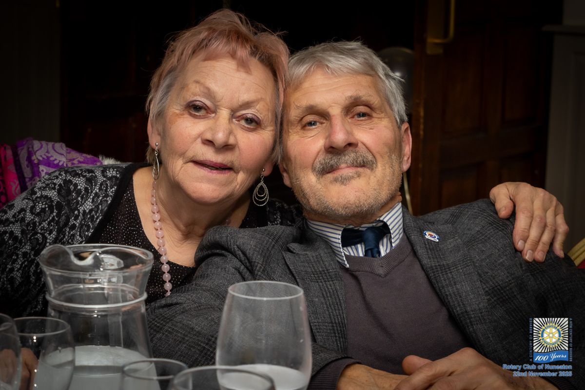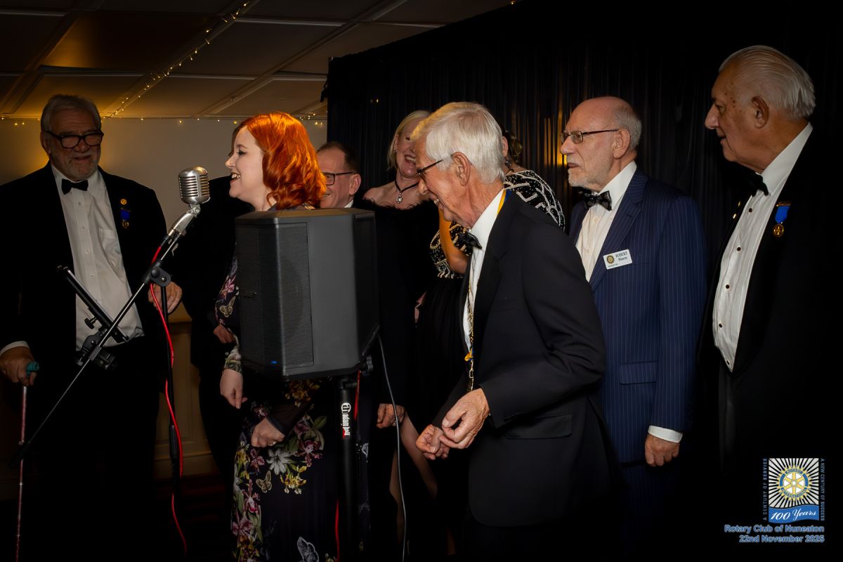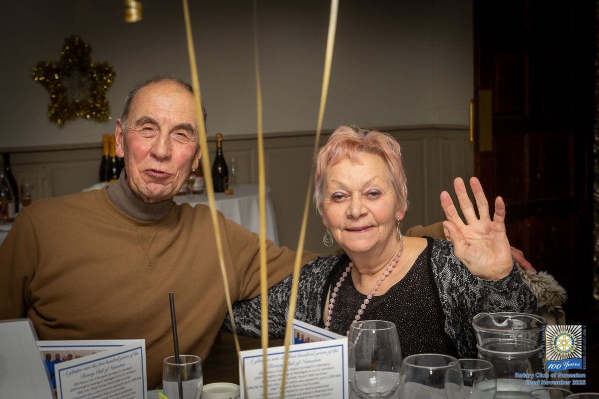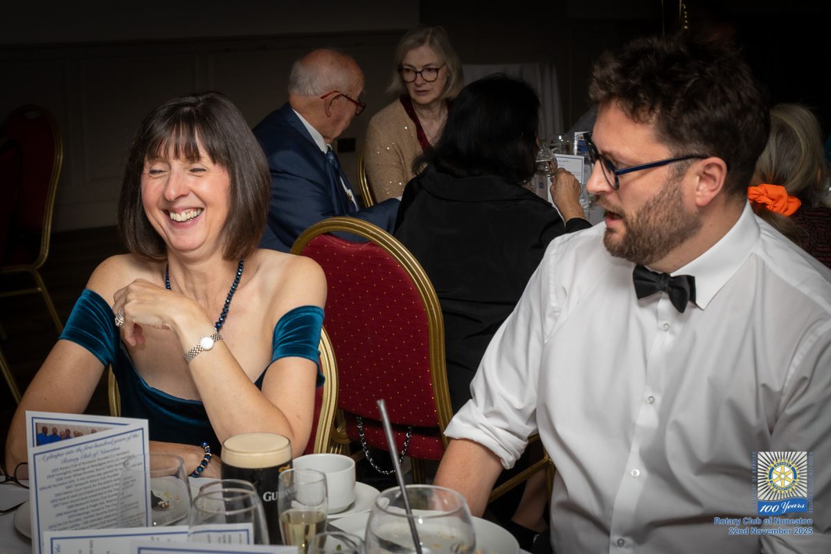 The evening began with a welcoming glass of bubbly before attendees enjoyed a superb three-course meal. President David Lloyd addressed the room with a heartfelt speech, recognising the profound contribution Rotary has made to Nuneaton and North Warwickshire over the past 100 years. He highlighted standout events from this milestone year, including the Matt Ford Concert and the Unsung Hero Afternoon Tea, and shared thoughtful reflections on what the club’s founder members might think if they visited today.