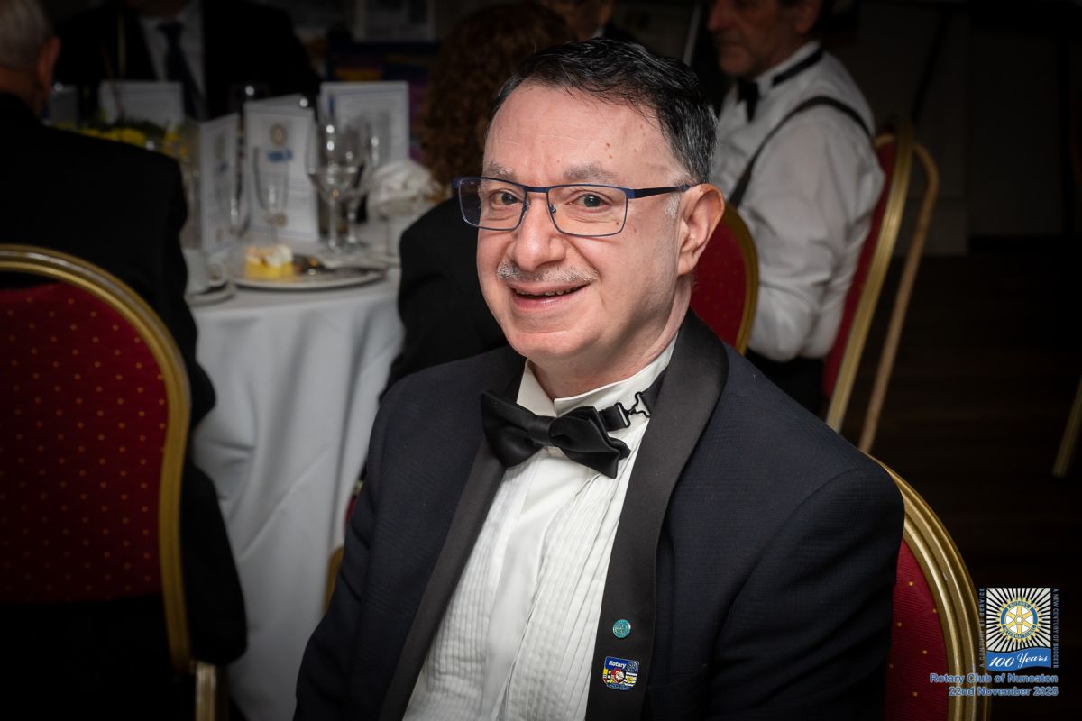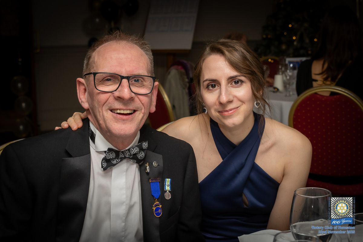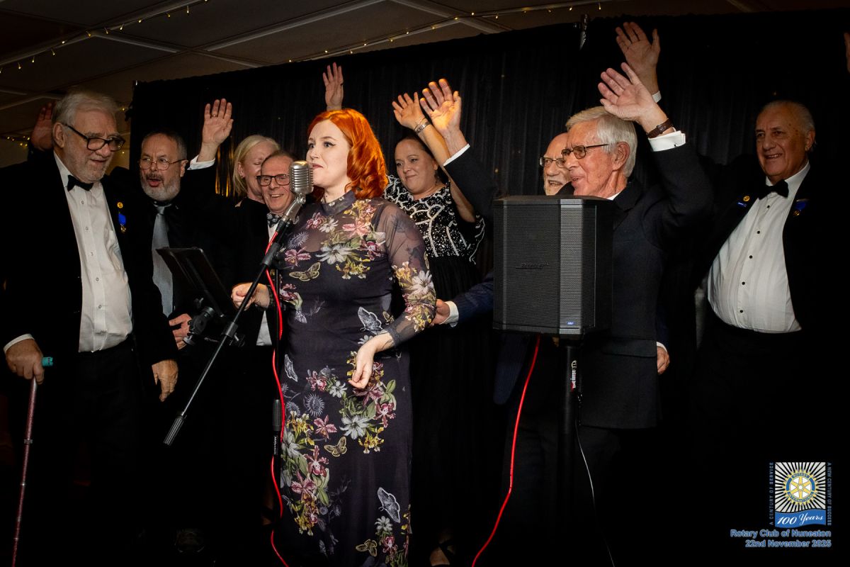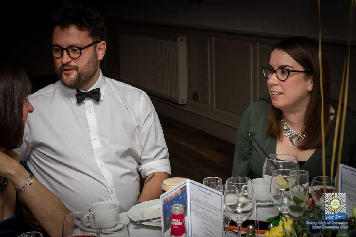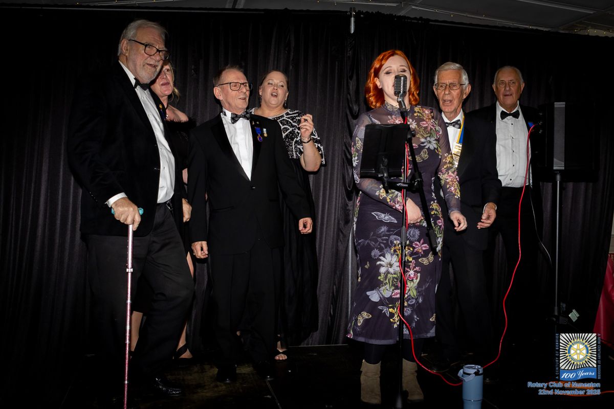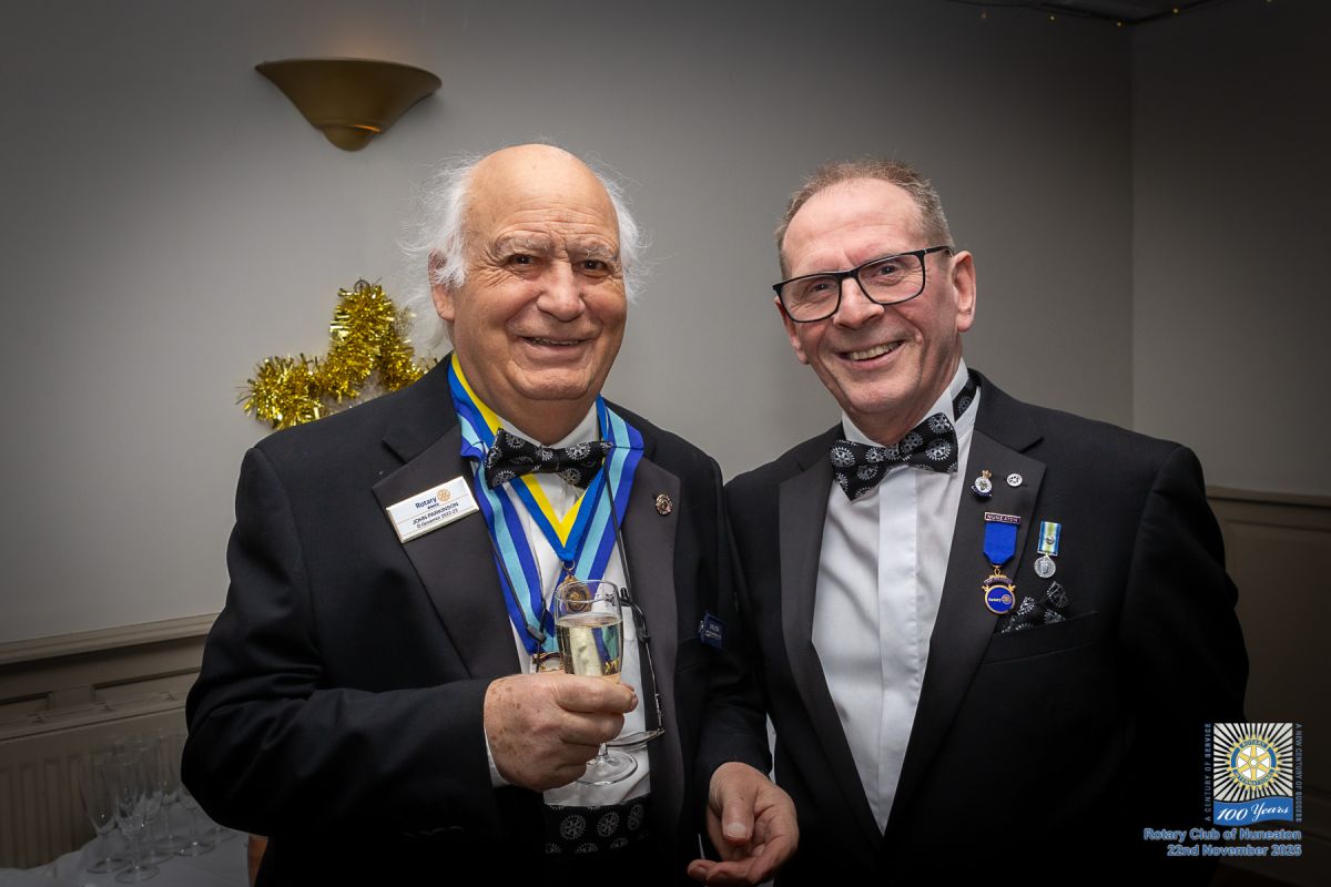 The evening began with a welcoming glass of bubbly before attendees enjoyed a superb three-course meal. President David Lloyd addressed the room with a heartfelt speech, recognising the profound contribution Rotary has made to Nuneaton and North Warwickshire over the past 100 years. He highlighted standout events from this milestone year, including the Matt Ford Concert and the Unsung Hero Afternoon Tea, and shared thoughtful reflections on what the club’s founder members might think if they visited today.