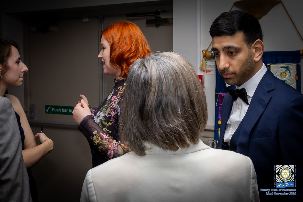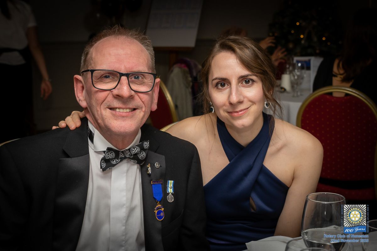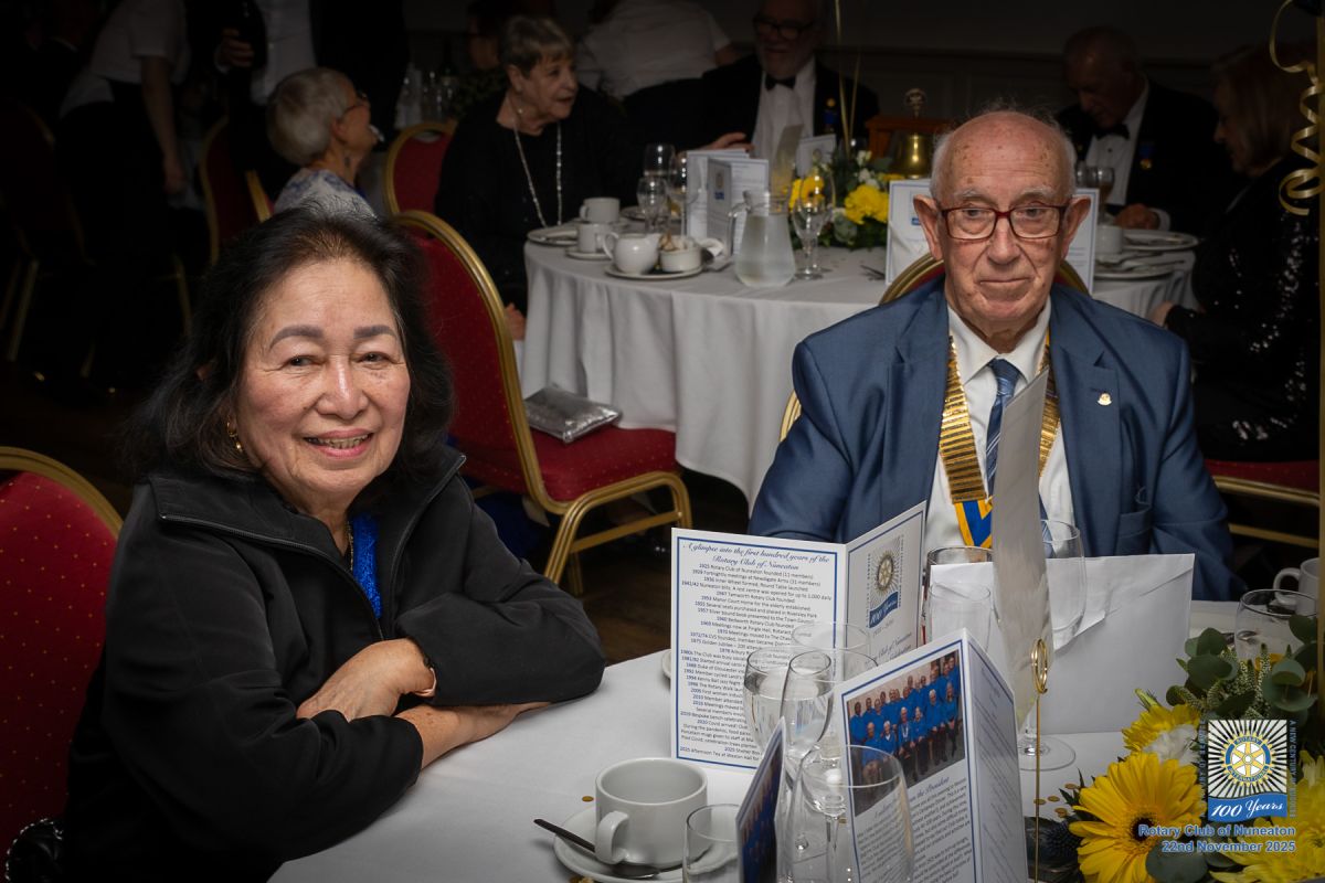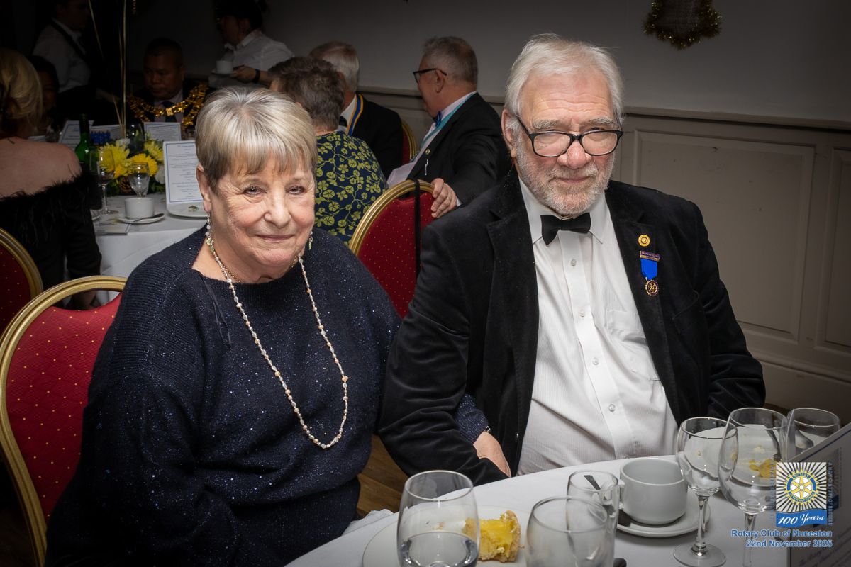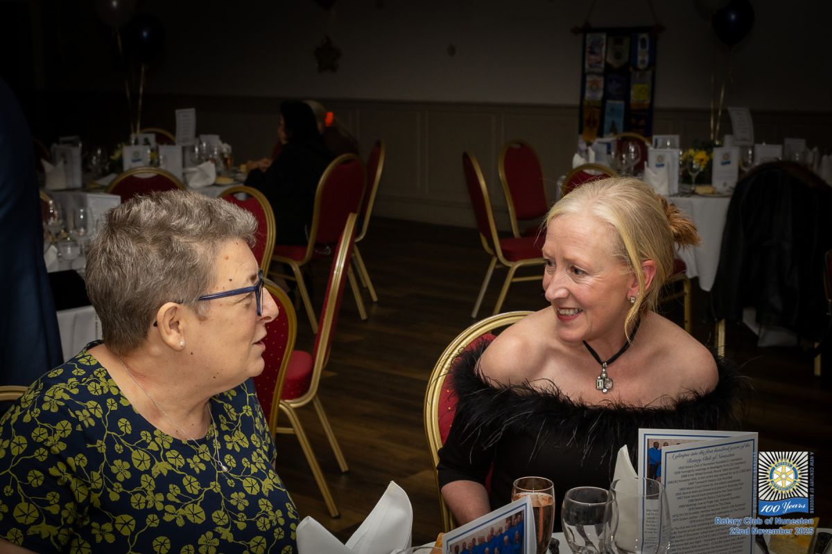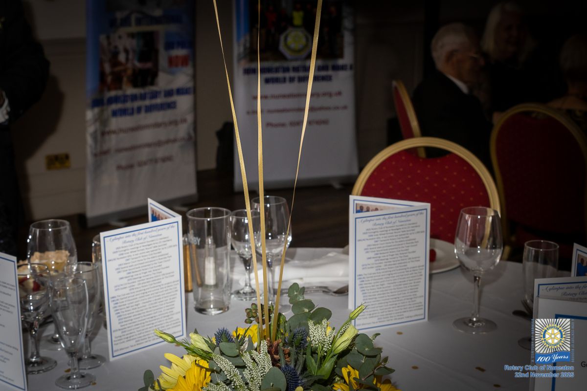 The evening began with a welcoming glass of bubbly before attendees enjoyed a superb three-course meal. President David Lloyd addressed the room with a heartfelt speech, recognising the profound contribution Rotary has made to Nuneaton and North Warwickshire over the past 100 years. He highlighted standout events from this milestone year, including the Matt Ford Concert and the Unsung Hero Afternoon Tea, and shared thoughtful reflections on what the club’s founder members might think if they visited today.