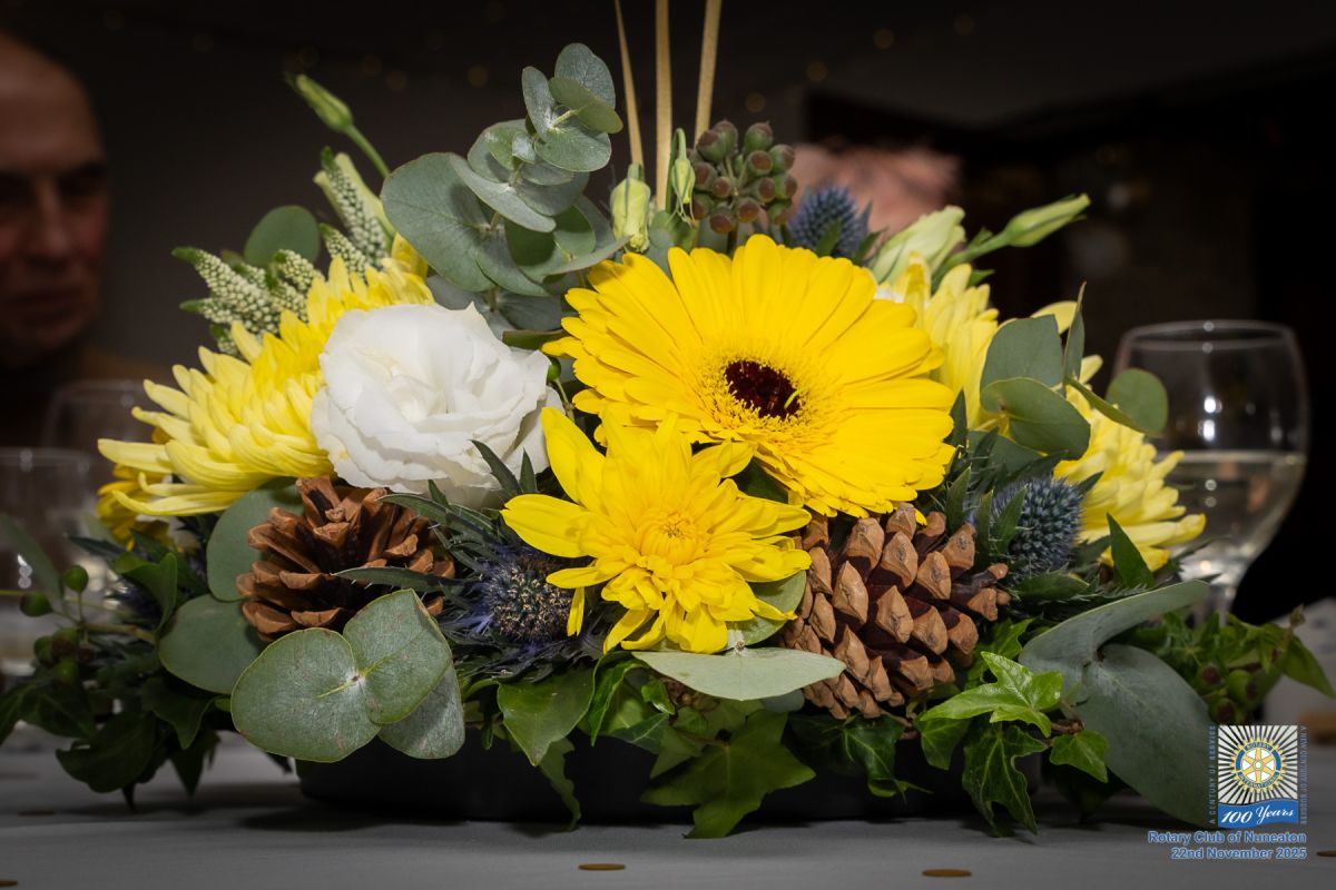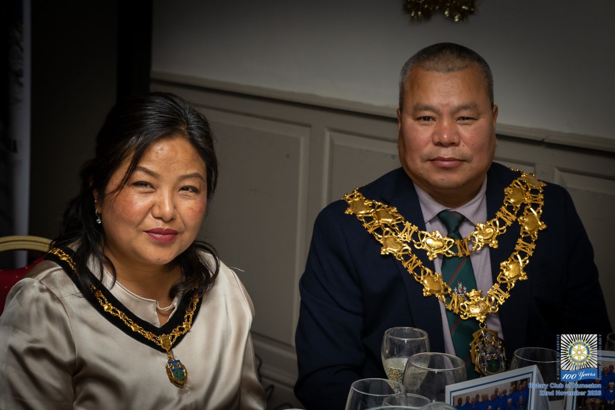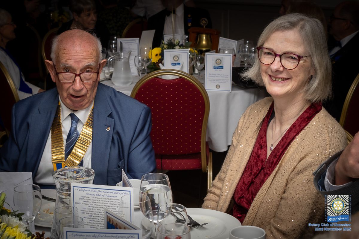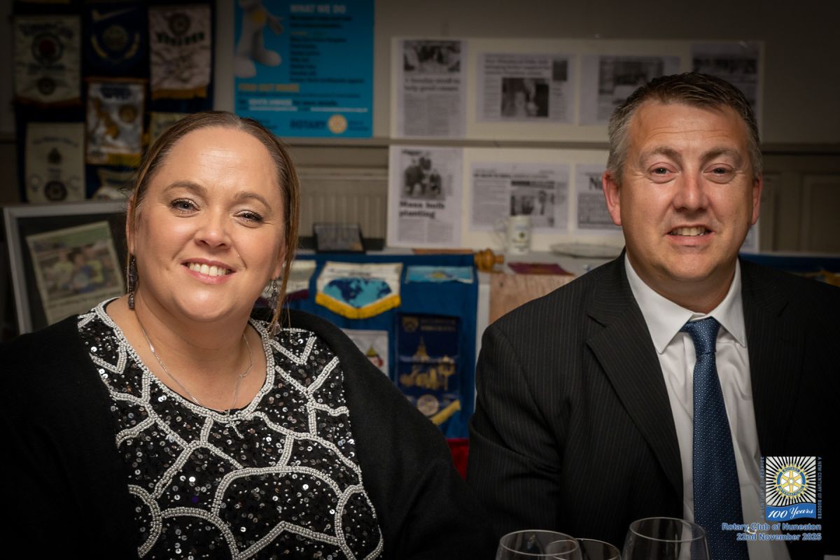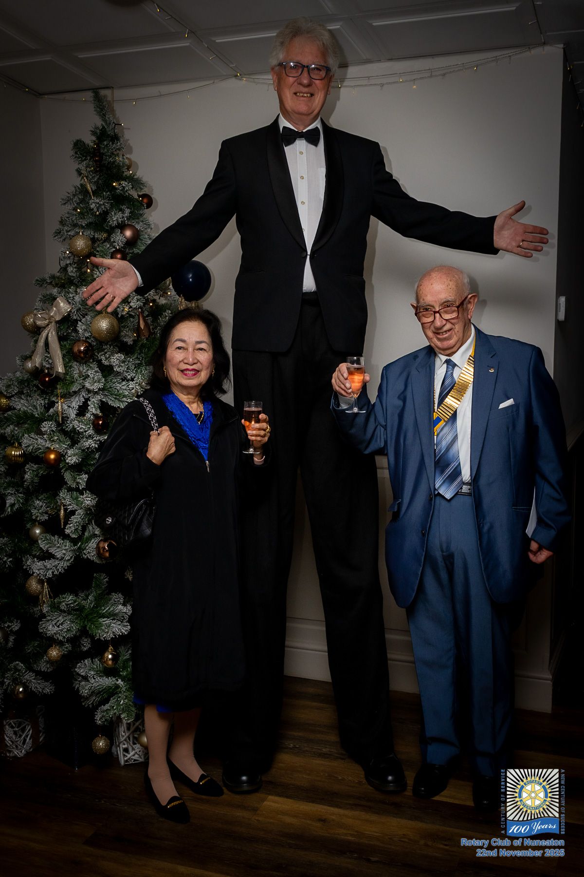 The evening began with a welcoming glass of bubbly before attendees enjoyed a superb three-course meal. President David Lloyd addressed the room with a heartfelt speech, recognising the profound contribution Rotary has made to Nuneaton and North Warwickshire over the past 100 years. He highlighted standout events from this milestone year, including the Matt Ford Concert and the Unsung Hero Afternoon Tea, and shared thoughtful reflections on what the club’s founder members might think if they visited today.