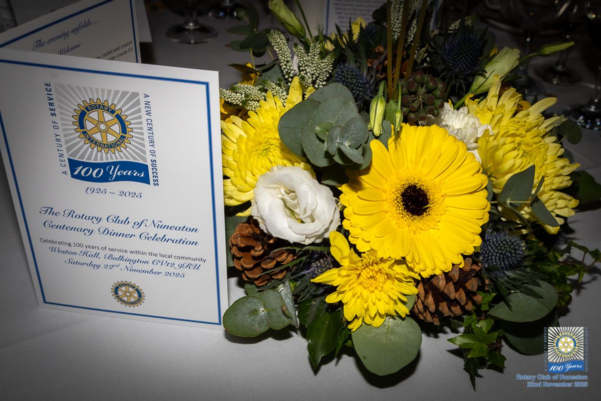 The Rotary Club of Nuneaton marked its 100th anniversary with an evening of celebration at the Weston Hall Hotel, joined by more than 60 guests and friends. Dignitaries from the District and sister clubs across District 1060 were also in attendance, helping to make the evening a truly memorable occasion.