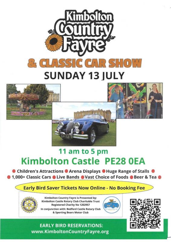 more The Rotary Club of Bedford Castle are running a Grand Raffle to be drawn at the Kimbolton Country Fayre and Classic Car Show