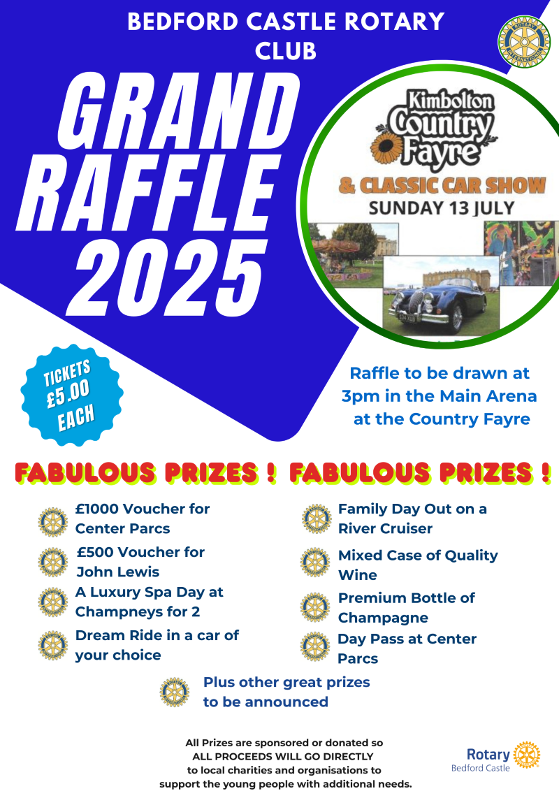 Contact Anthony Wildman about this page:more Rotary Club of Bedford Castle are now fully embedded in the organisation of the Kimbolton Country Fayre and Classic Car Show 2025