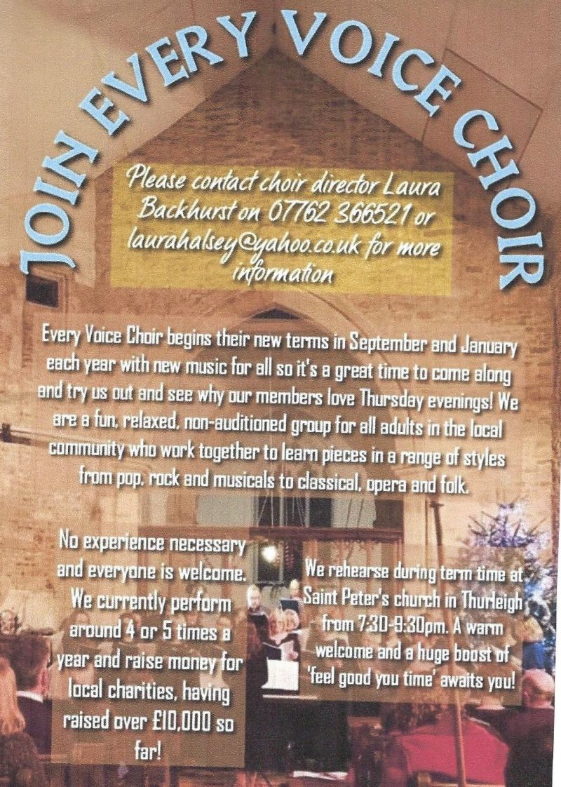 Laura Backhurst gave an engaging talk on her experieinces qualifying as a professional musician, However, she extols the benefits of music, from playing an instrument, sinigng in a choir or simply listening. As a professional musician and music teacher she has exstensive musical repertoire. Apart from her professional music teaching work, she also leads a local Community Choir at Thurleigh, The Every Voice Choir, which rehearses at St Peters Church in Thurleigh and new members are always welcome