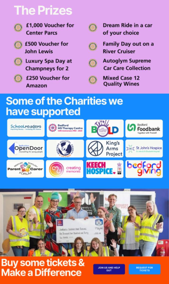 moreBedford Castle Rotary Club put a great deal of effort into raising money for good causes. Over the past few years we have made charitable donations to the following:-