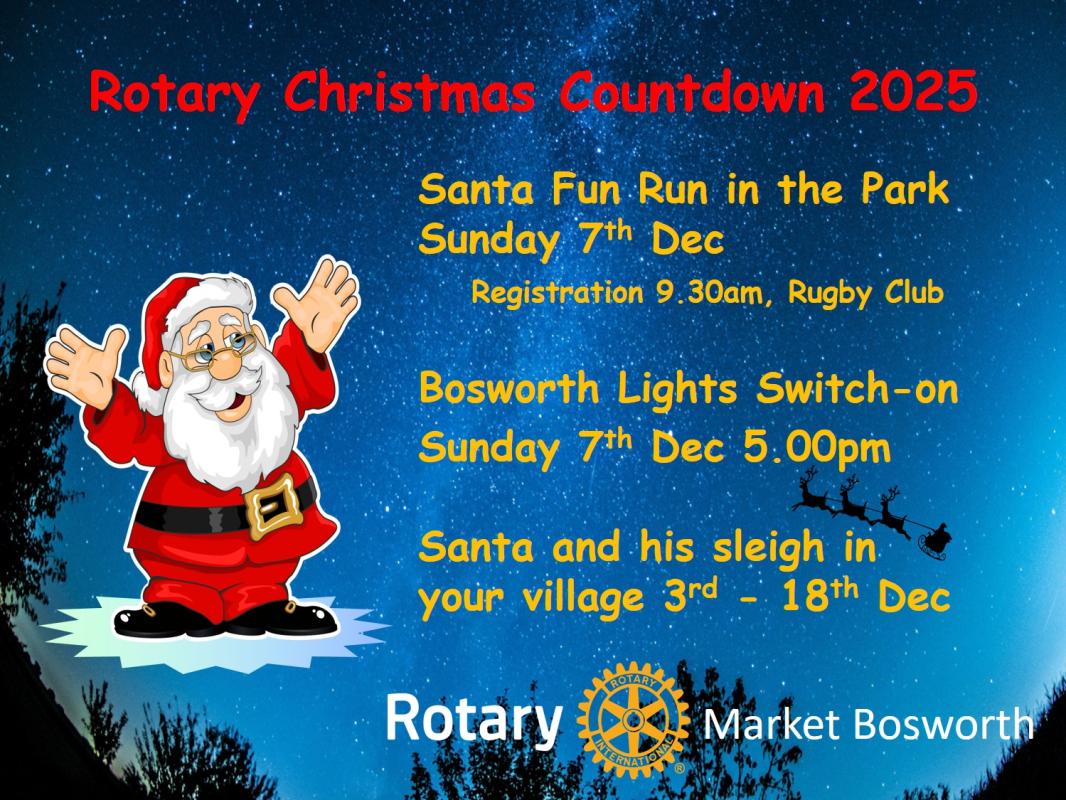 After the Fun Run why not visit Market Bosworth's market square where, from 2.00pm you will find food stalls, a fun fair, live music and, most importantly, Santa with his sleigh. He will be delighted to talk to as many children as possible to find out their Christmas wishes.
